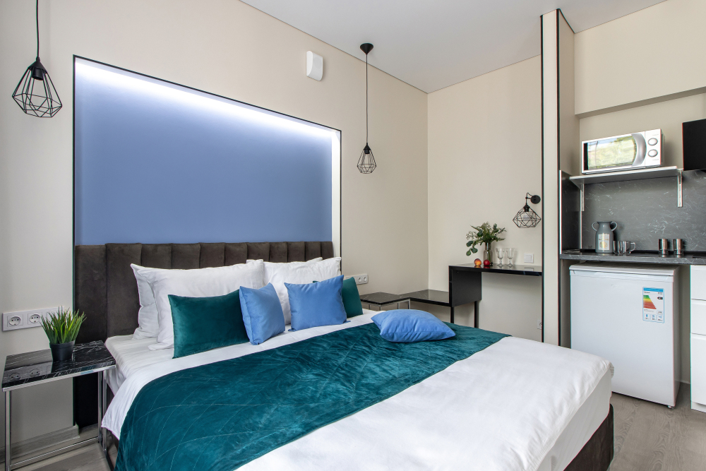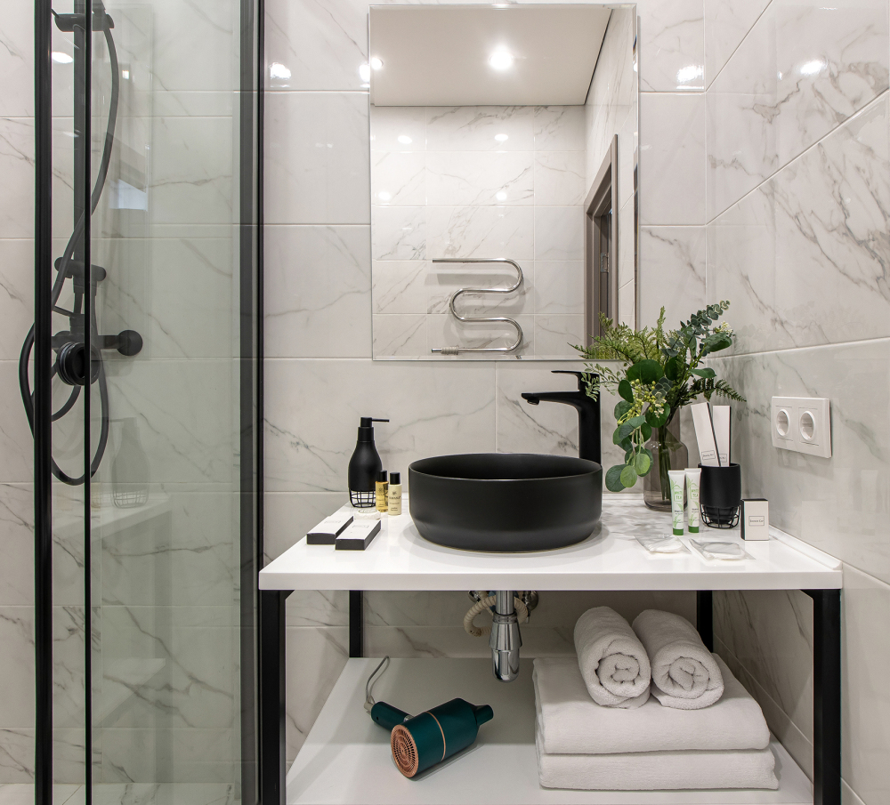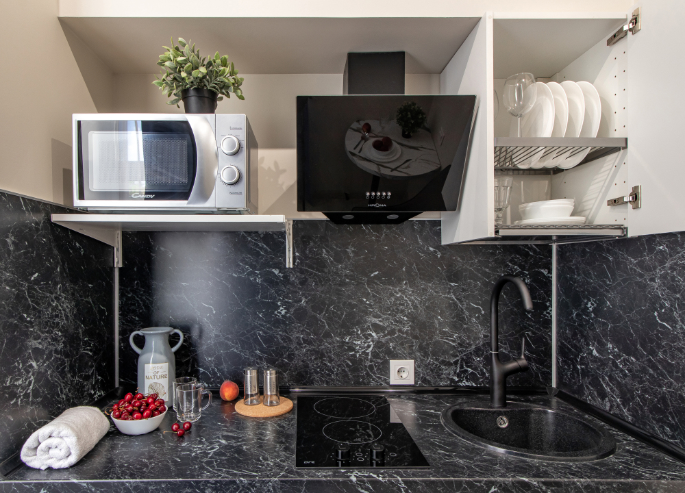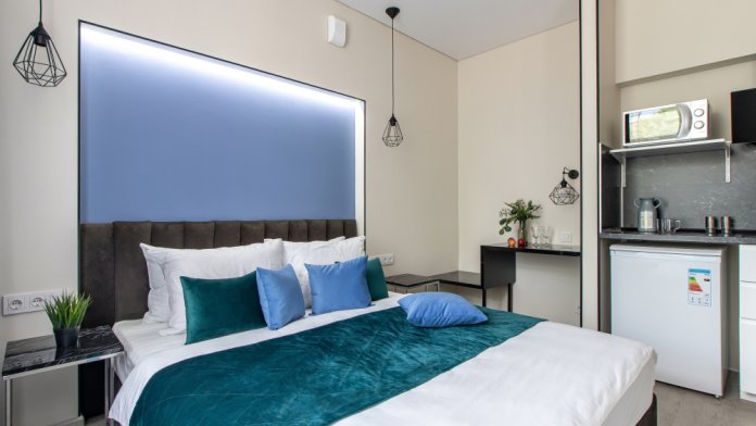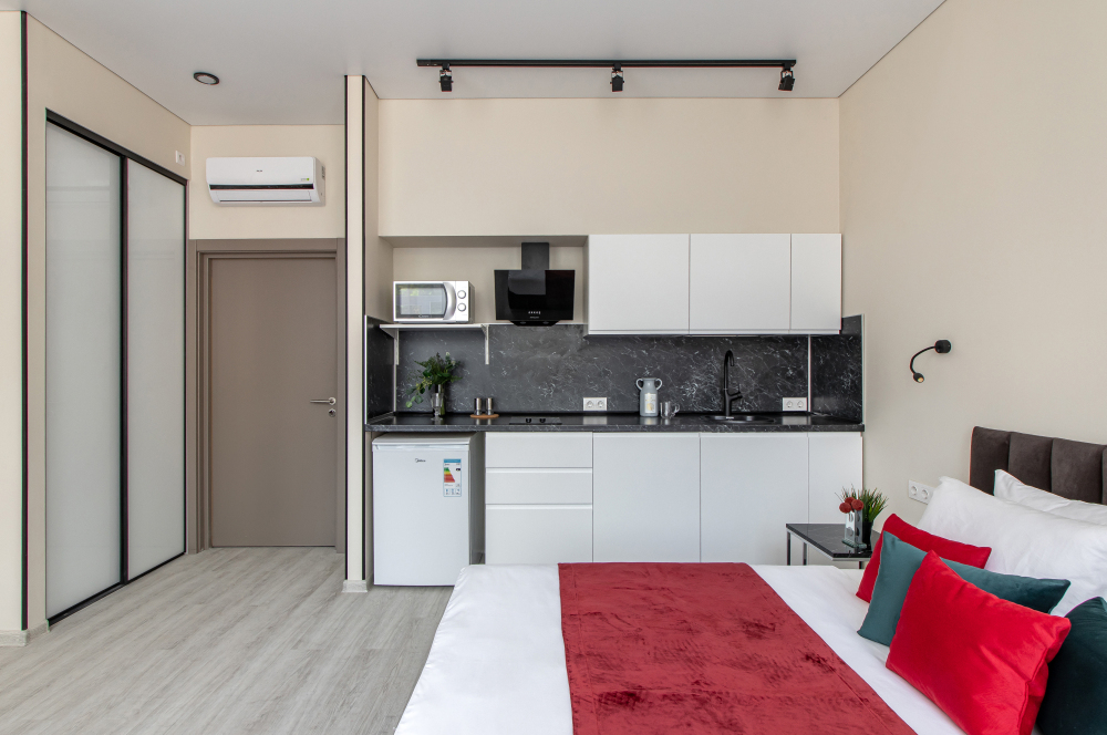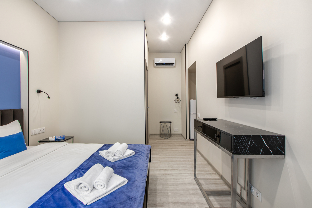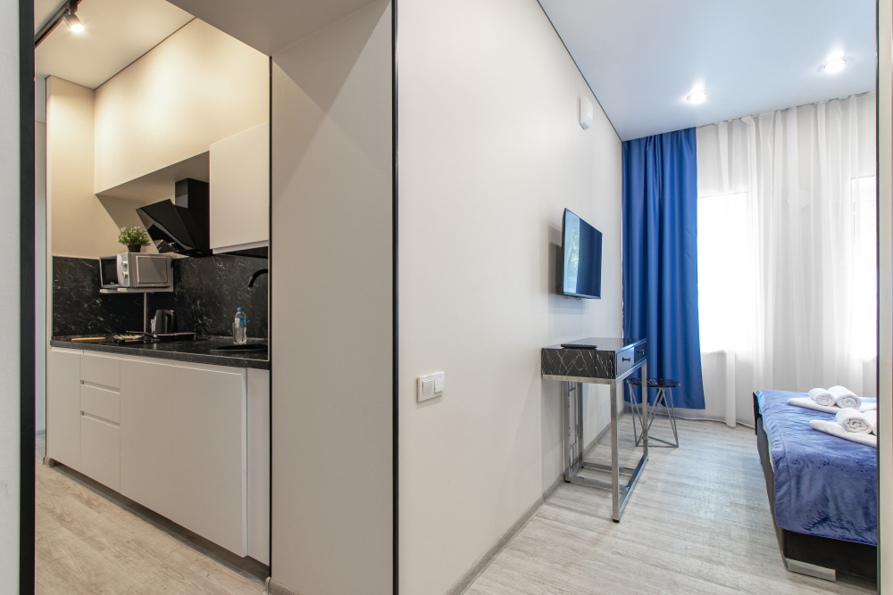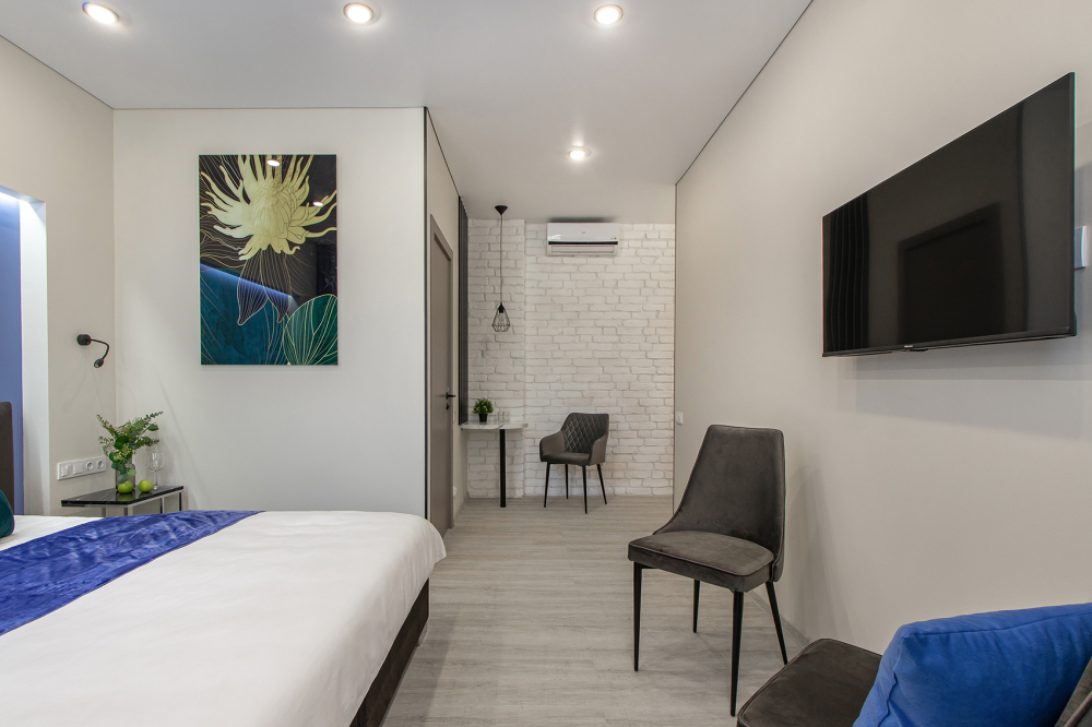 Во всех апартаментах есть полностью оборудованная кухня с микроволновой печью, холодильником, электроплитой и чайником, гостиная зона, телевизор с плоским экраном, стиральная машина и собственная ванная комната с душем и тапочками. К услугам гостей представлены номера с современным дизайнерским ремонтом, мебелью, кондиционером и бесплатным Wi-Fi.