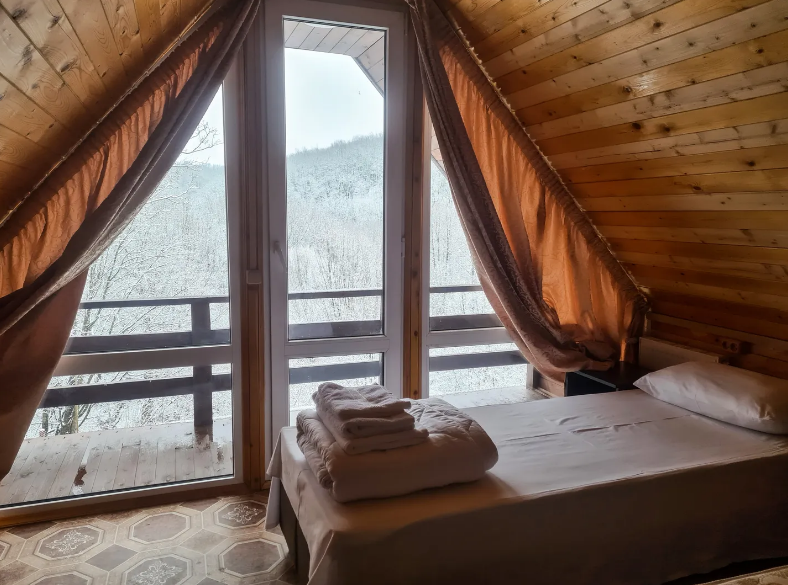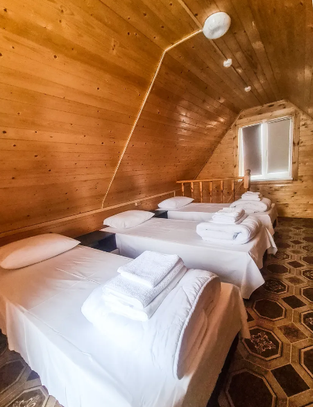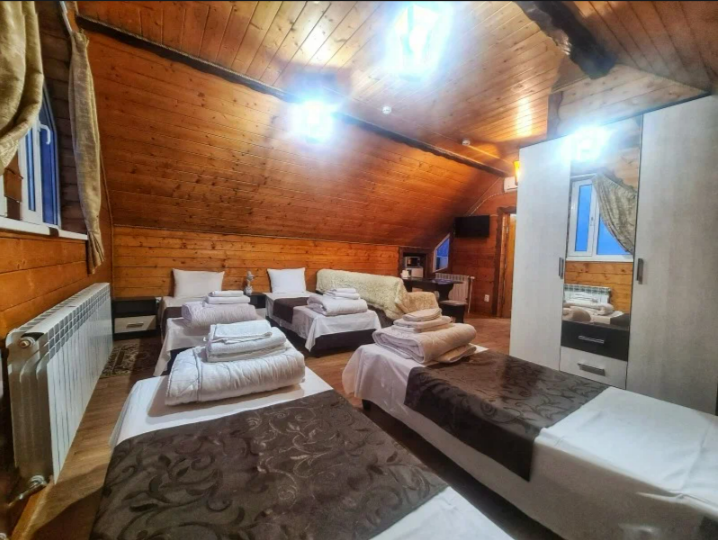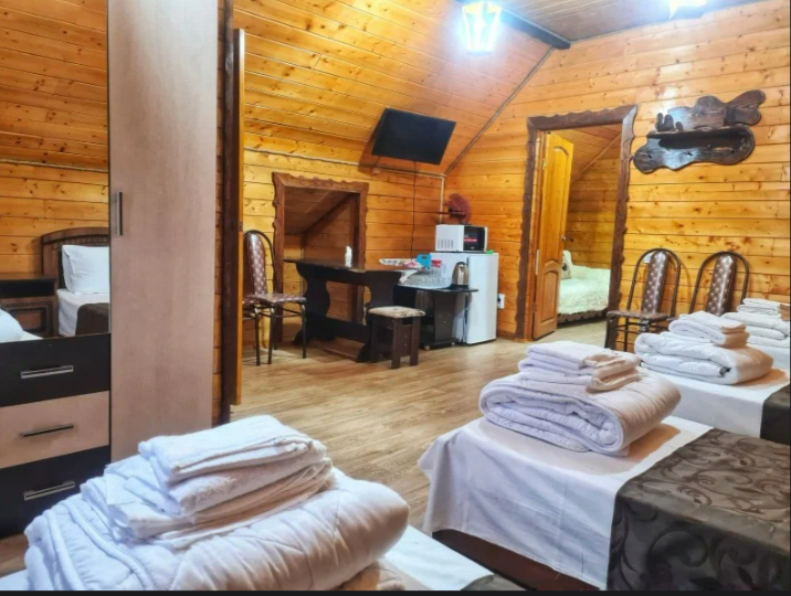 К Вашим услугам современные комфортабельные 2-5-местные номера в гостевом доме или двух уровневых коттеджах с видом на горы и лес, мангалы, беседки, кухня, где есть все условия для самостоятельного приготовления пищи.