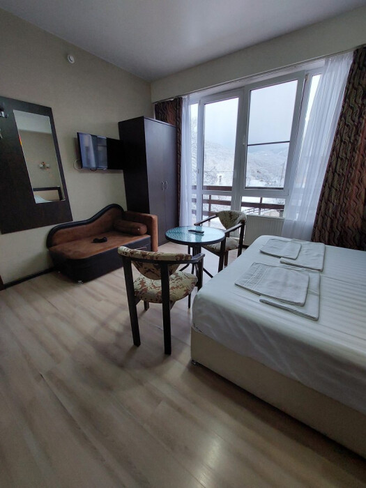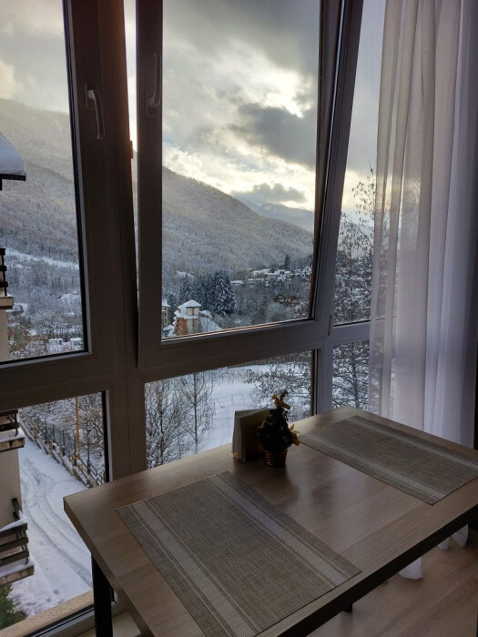Апартаменты «Горная сказка» с панорамным видом на горы расположились на Красной поляне, в Сочи.