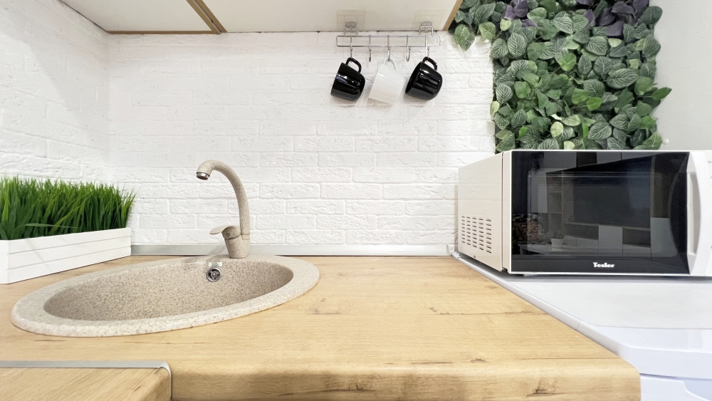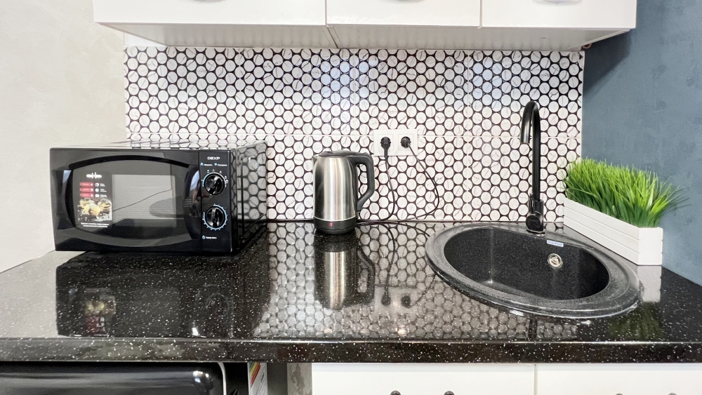 Отдыхающие могут готовить самостоятельно на оборудованной бытовой техникой и посудой кухне, либо обедать в ресторанах и кафе поблизости.