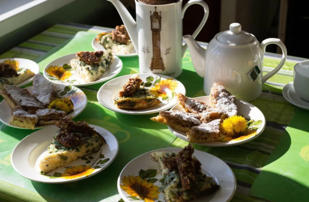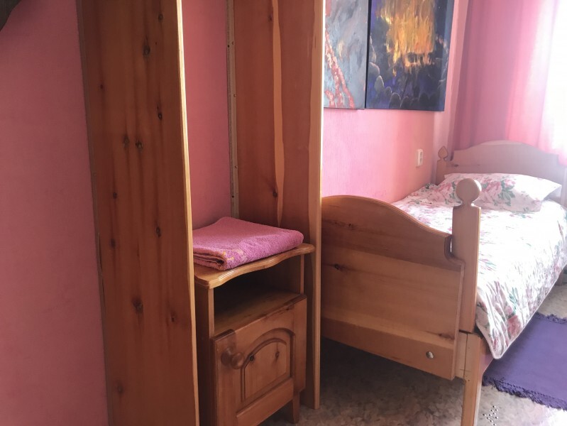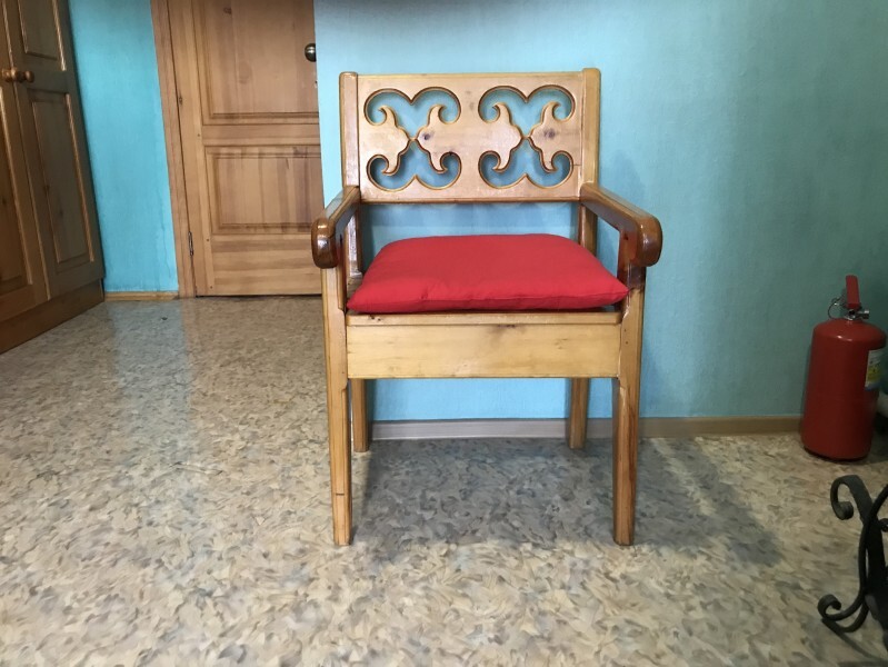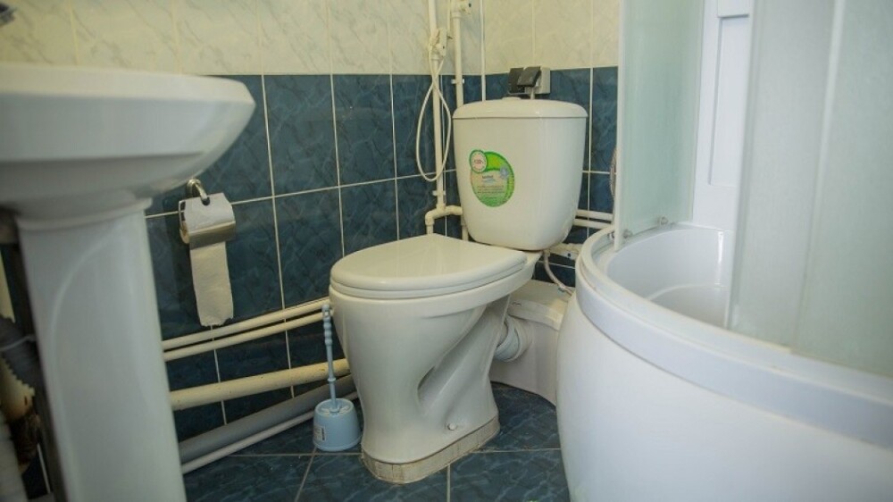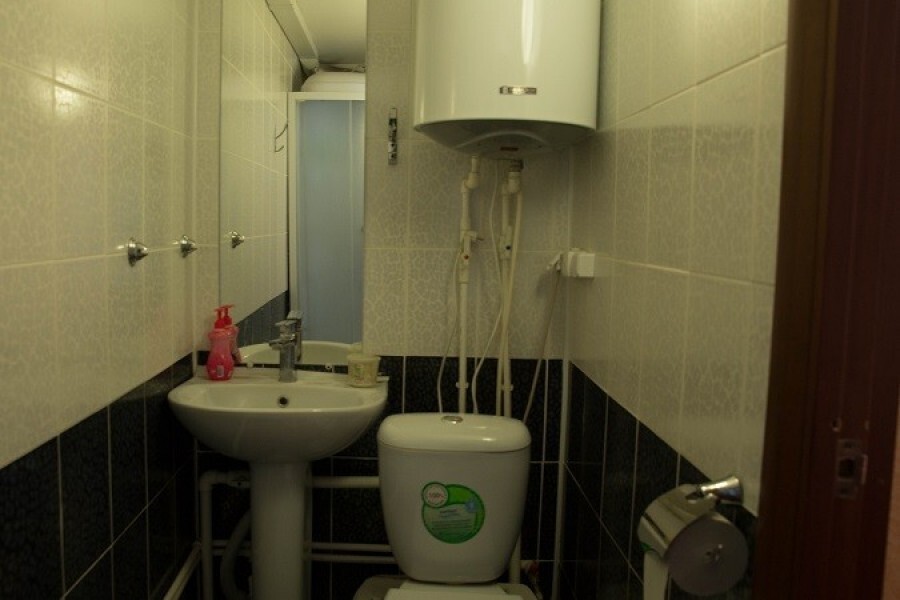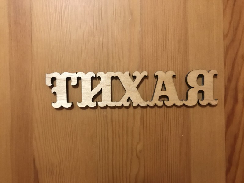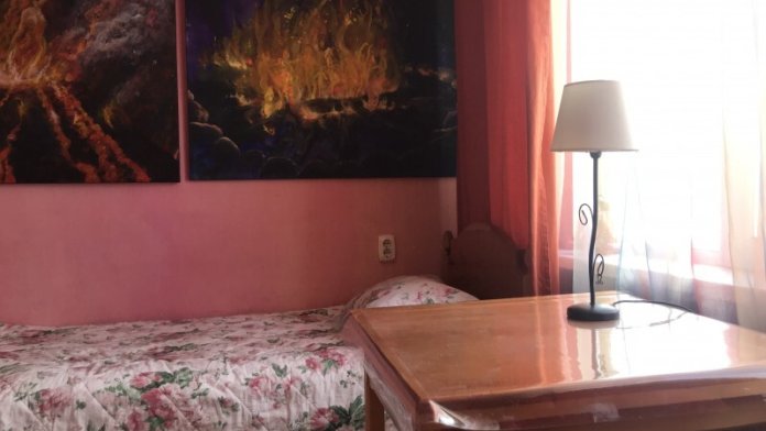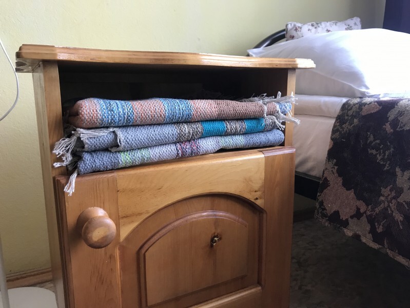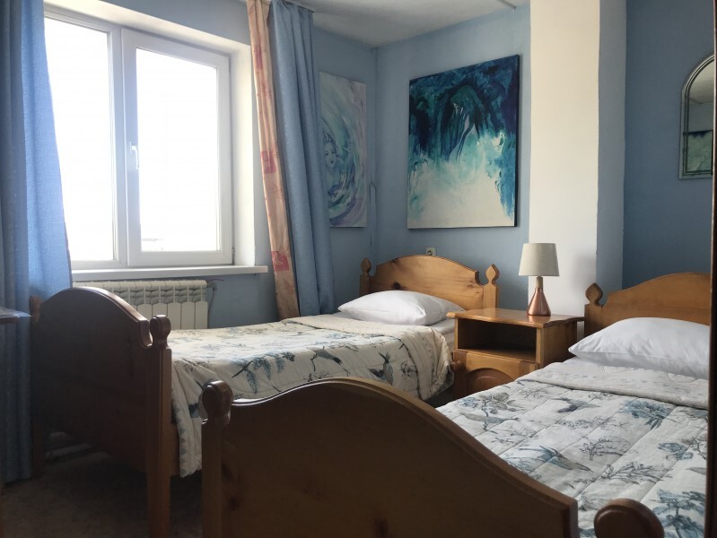 В комнате 3 кедровые кровати, белое белье, полотенца. Тумбочка и полки для одежды, стол. Туалет рядом с комнатой. В других комнатах на этаже есть свои туалеты. Душ на 1 этаже. Стены украшены картинами американской художницы К.Хилтон. Можно воспользоваться общей кухней или заказать питание.