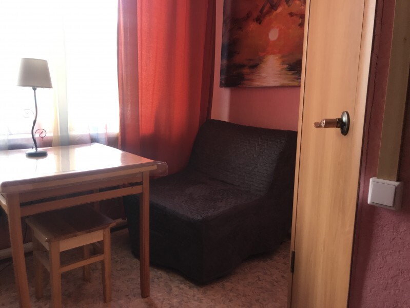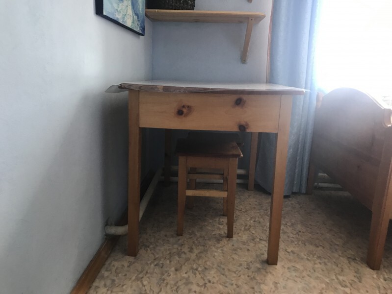 Номер расположен на втором этаже гостевого дома. В комнате кедровая кровать, белое белье, полотенце. Имеются тумбочка, кресло и полки для одежды, стол. Кресло раскладывается в дополнительное спальное место. В номере имеются туалет и душ.