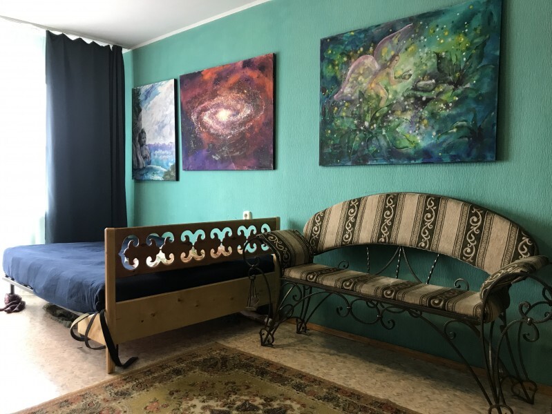 Комната украшена картинами американской художницы Кэрол Хилтнер.
