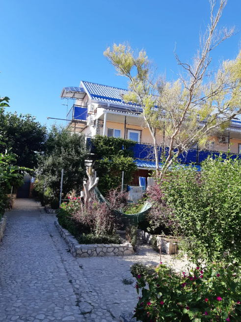 На территории есть мини-детский уголок, садовые качели, большой каменный мангал, общая кухня.