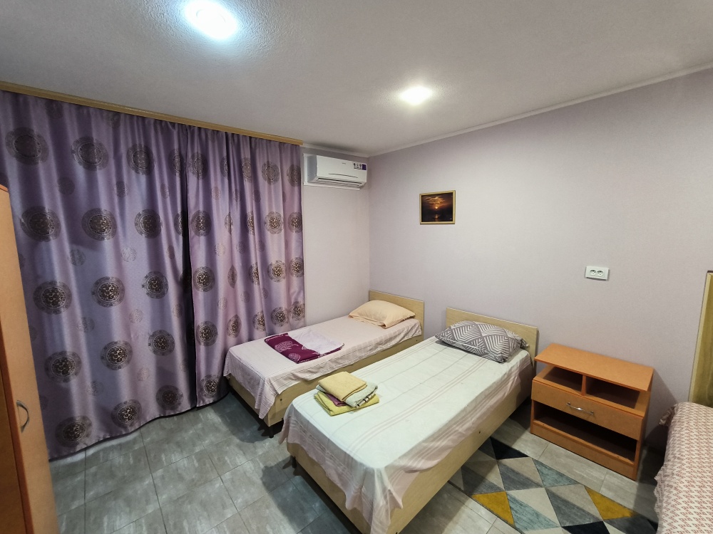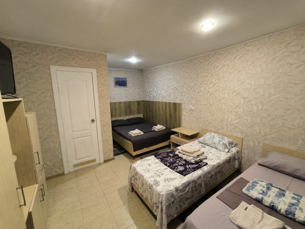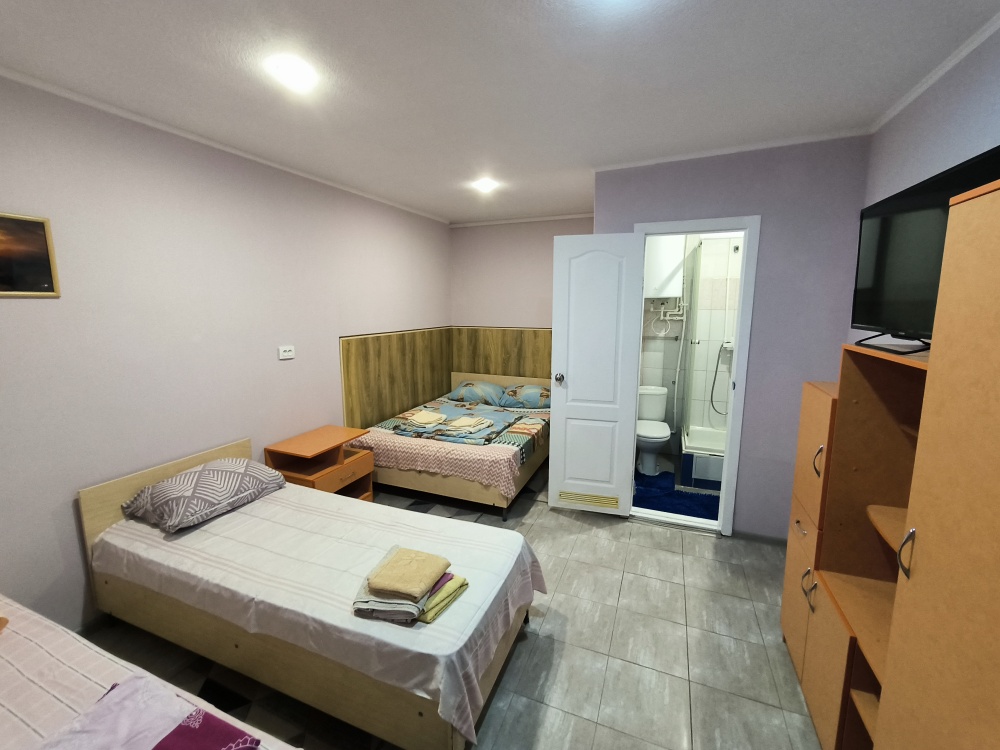 На закрытой территории гостям для размещения предлагаются комнаты разных категорий и вместимости, со всем необходимым для комфортного отдыха. В комнатах: кондиционер, бесперебойная холодная и горячая вода, постельные принадлежности, ТВ, холодильник, санузел с душевой кабиной.