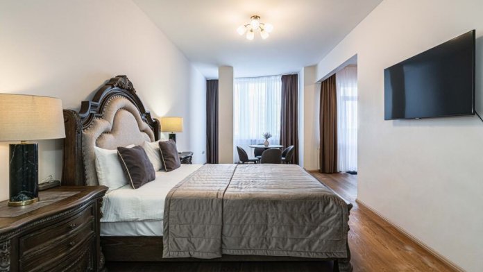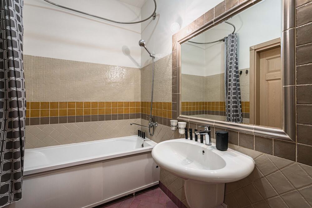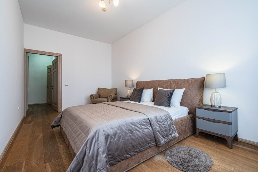 Апартаменты № 48 - это квартира с интересной, просторной планировкой и высокими трехметровыми потолками оформлена в американском стиле, для которого характерно использование дерева в интерьере. Деревянные полы, двери, плинтуса и мебель американской фабрики Ashley делают квартиру теплой и уютной. Кровати с удобнейшими матрасами позволят отдохнуть после долгих прогулок по городу и области. Кондиционер сделает отдых в жаркое время года комфортным и приятным.