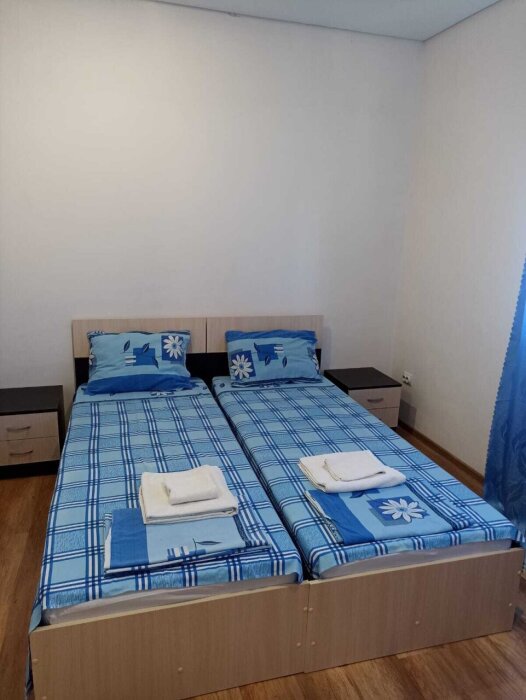 В настоящее время сдаются 6 номеров, то есть у нас нет шумных компаний и можно отдохнуть в тишине. Номера на 2 взрослых + дополнительное место детское,а также один номер семейный на 4 +доп место. В номерах есть шкаф-купе, холодильник, тумбочки, столик, санузел, душевая, фен, чайник, чайные приборы.