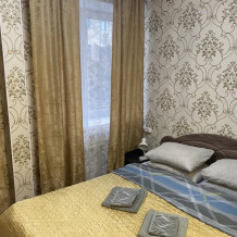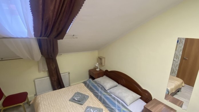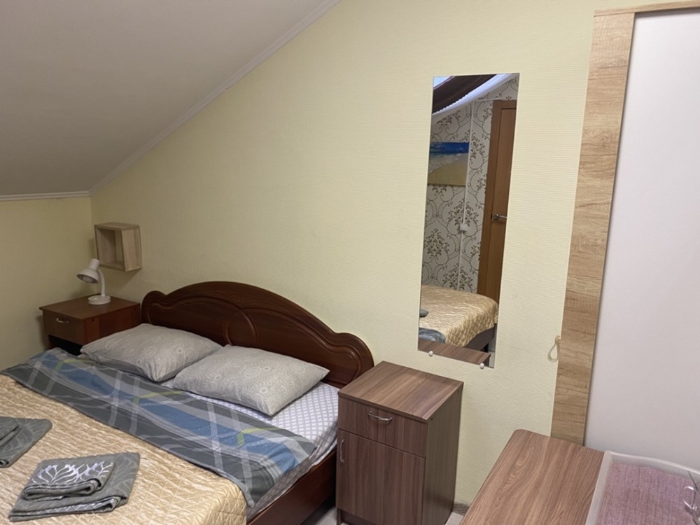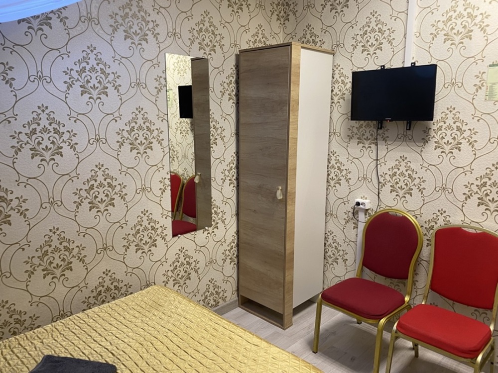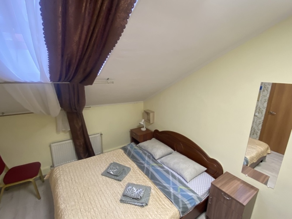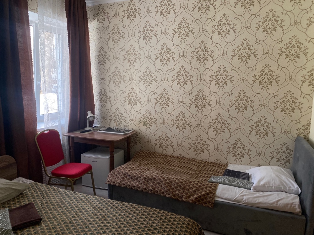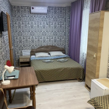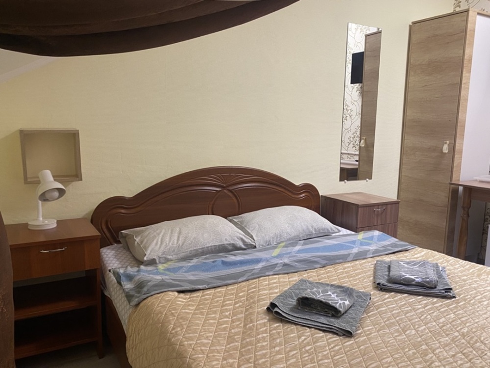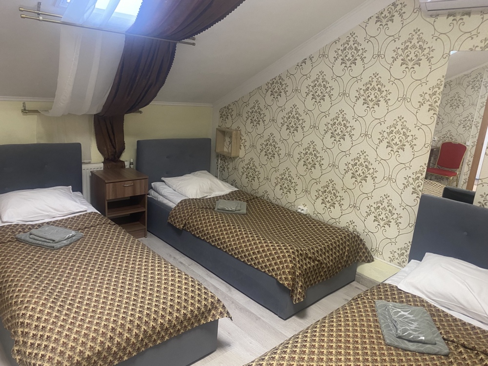 В номере: 1-а двухспальная кровать и 1-а односпальная кровать или 3-и односпальные кровати, тумбочки, ТВ, стол, стул, вешалка для одежды. Пол: ламинат. Кондиционер (выборочно).