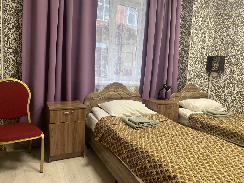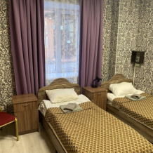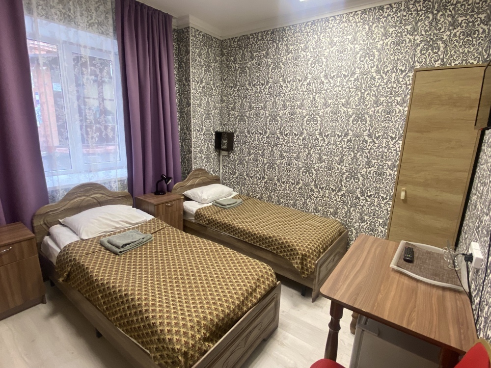 В номере: 2-е раздельные односпальные кровати, тумбочки, ТВ, стол, стул, вешалка для одежды. Пол: ламинат.