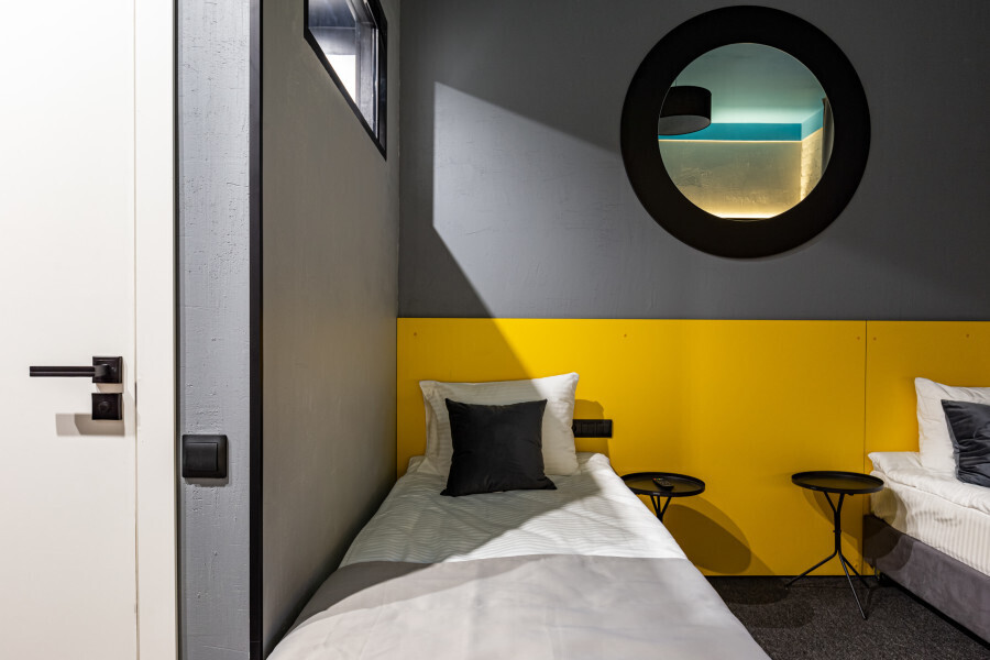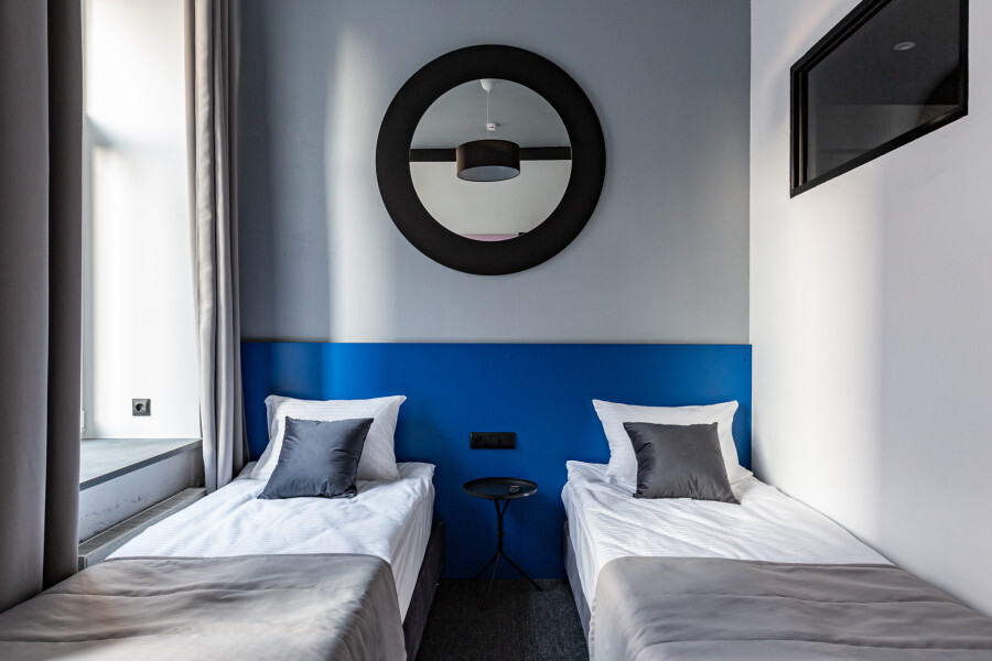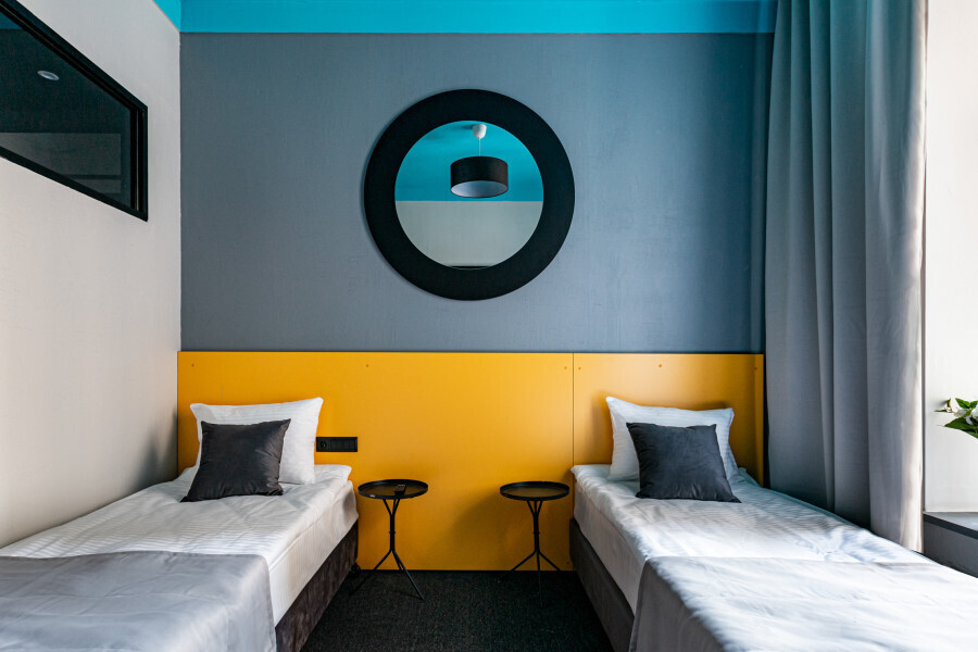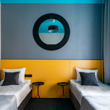 Номер площадью 15 м2. с 1 двуспальной кроватью 160*200 см. или 2 односпальными кроватями 80*200 см. Вместимость номера - 2 гостя.
