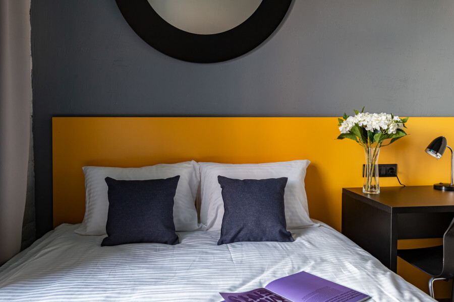 Номер площадью 17 м2. с 1 двуспальной кроватью 160*200 см. или 2 односпальными кроватями 80*200 см. Вместимость номера - 2 гостя.
