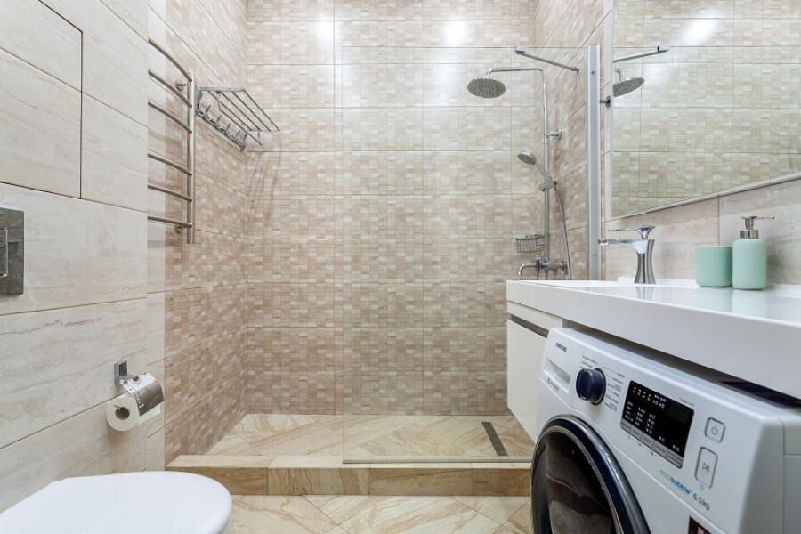 Ванная комната оснащена полотенцами, тапочками, мыльными принадлежностями, феном, стиральной машиной и душем.