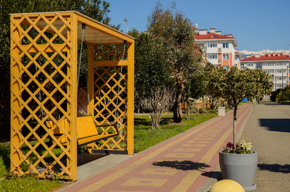 Вашему вниманию предлагаются комфортные уютные апартаменты посуточно в Адлере, пгт Сириус (бульвар Надежд, д. 4/1, кв. 102а).