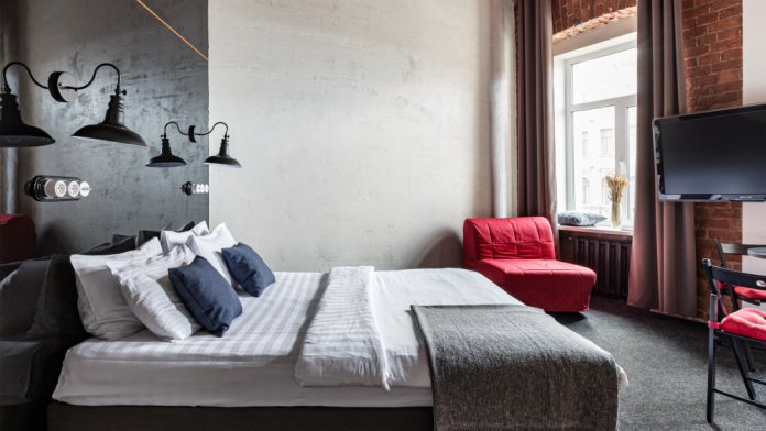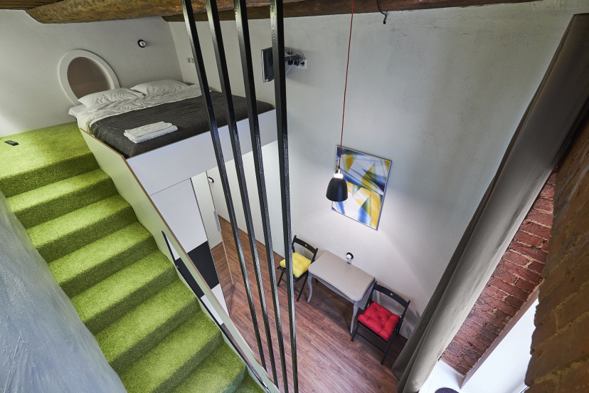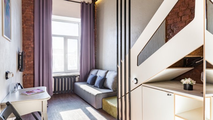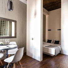 Студия площадью 25 м2. с 1 двуспальной кроватью 160*200 см. и 1 креслом. Вместимость номера - 3 гостя. Всего номеров этой категории - 1 шт.