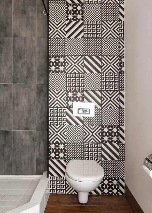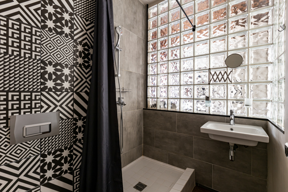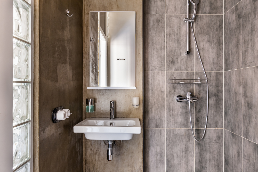 В ванной комнате: душ, туалет, раковина, полотенца, туалетно-косметические принадлежности, фен.
