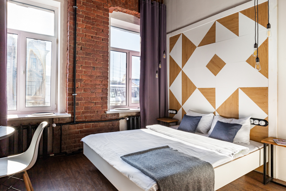 Номер площадью 13 м2. с 1 двуспальной кроватью 160*200 см. Вместимость номера - 2 гостя. Всего номеров этой категории - 2 шт.