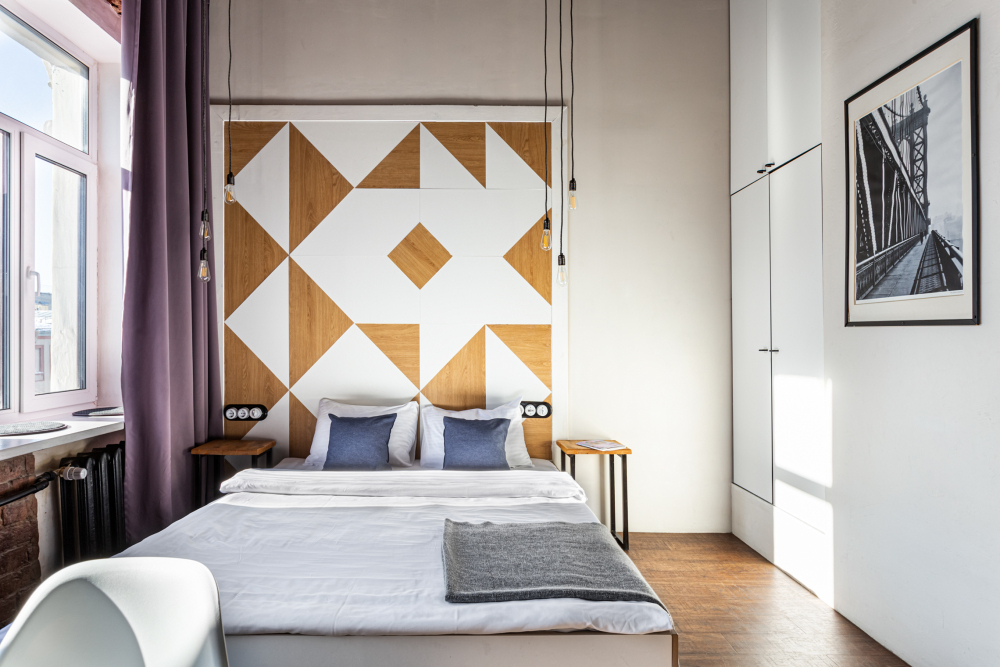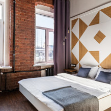 Номер площадью 19 м2. с 1 двуспальной кроватью 160*200 см. и раскладным диваном. Вместимость номера - 4 гостя. Всего номеров этой категории - 2 шт.