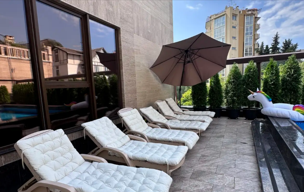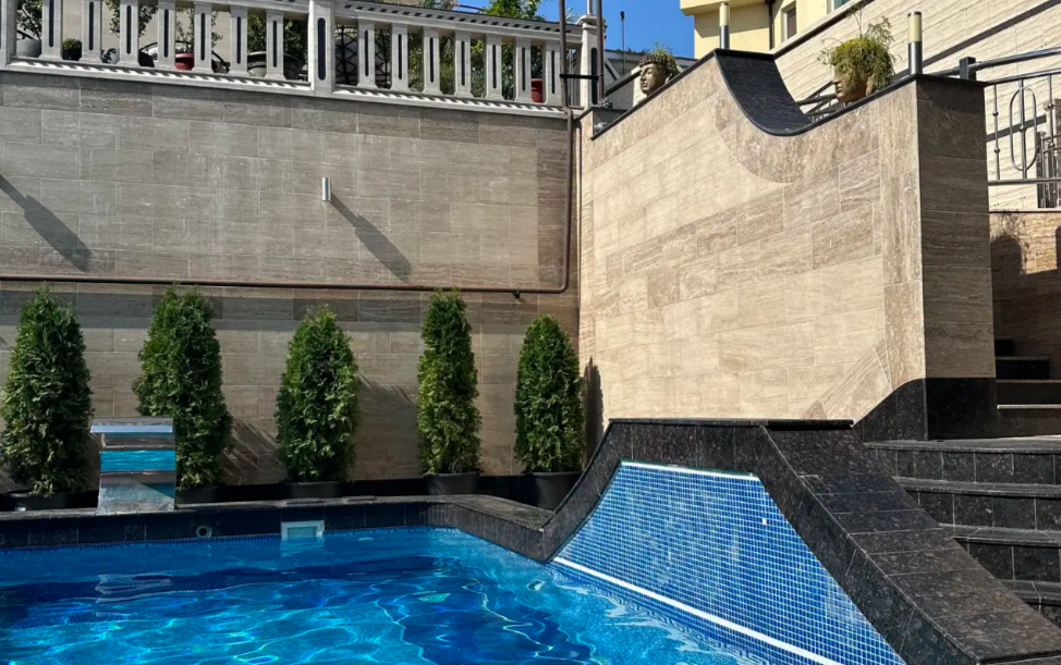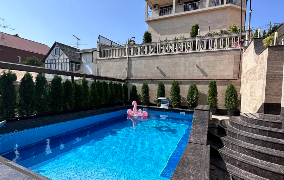 На придомовой территории есть открытый бассейн, зона барбекю, зона отдыха.