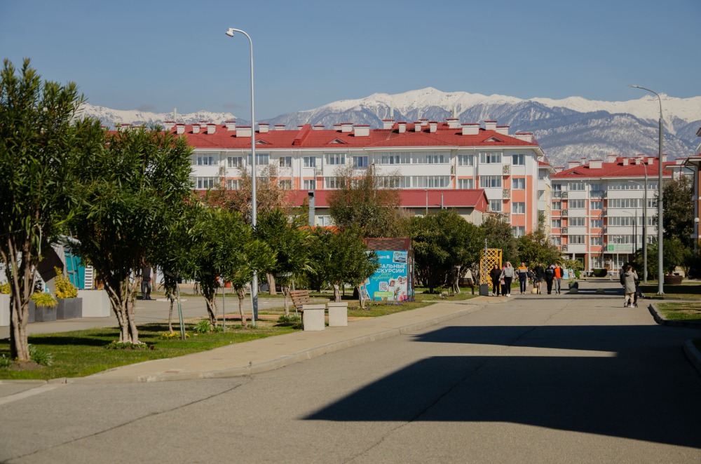 Расположение в самом сердце Сириуса, с богатой инфраструктурой и близостью к основным достопримечательностям: магазины, рестораны, пляж, Сочи парк, стадион Фишт, Ледовый дворец и площадь награждения Олимпийских Игр.