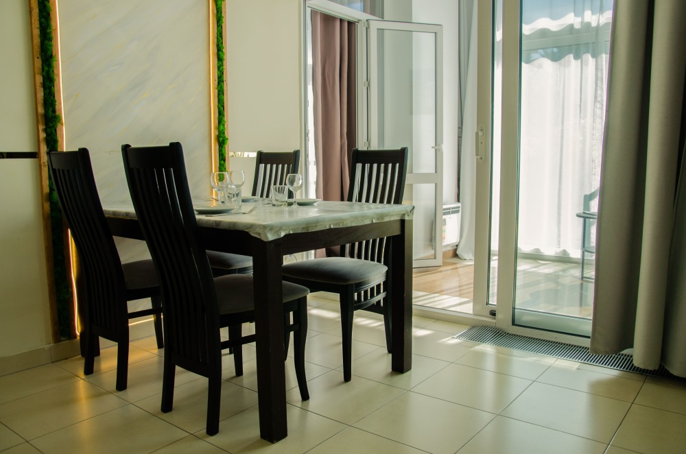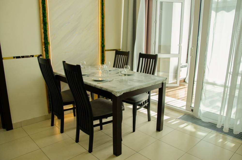Стол и стулья для приема пищи.