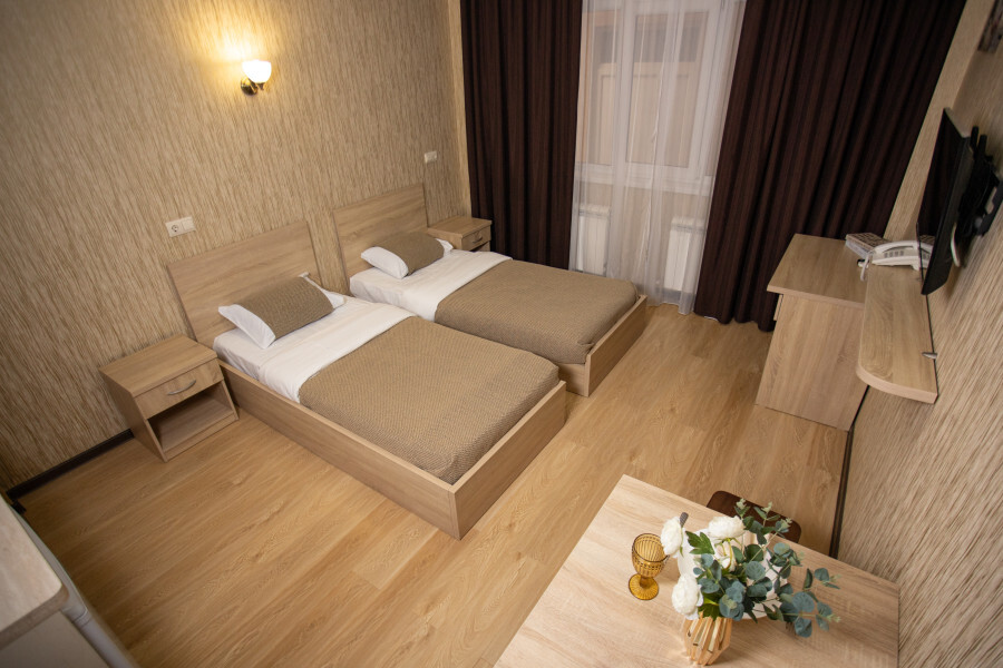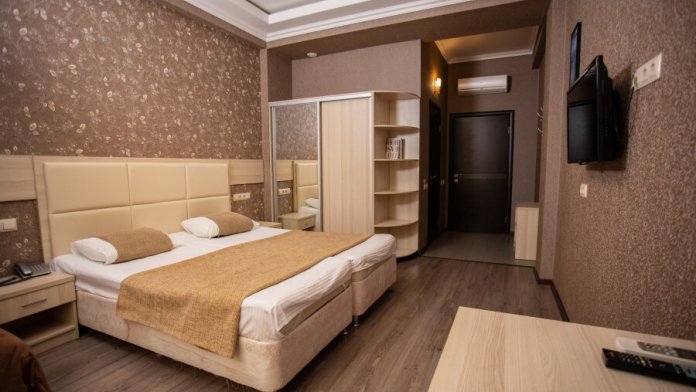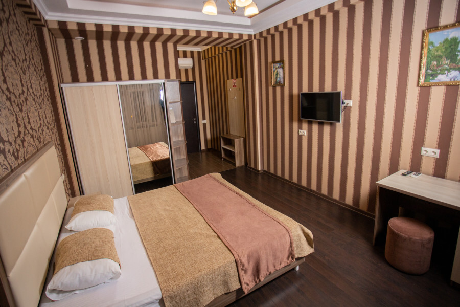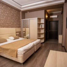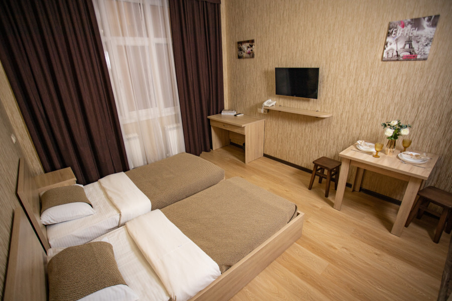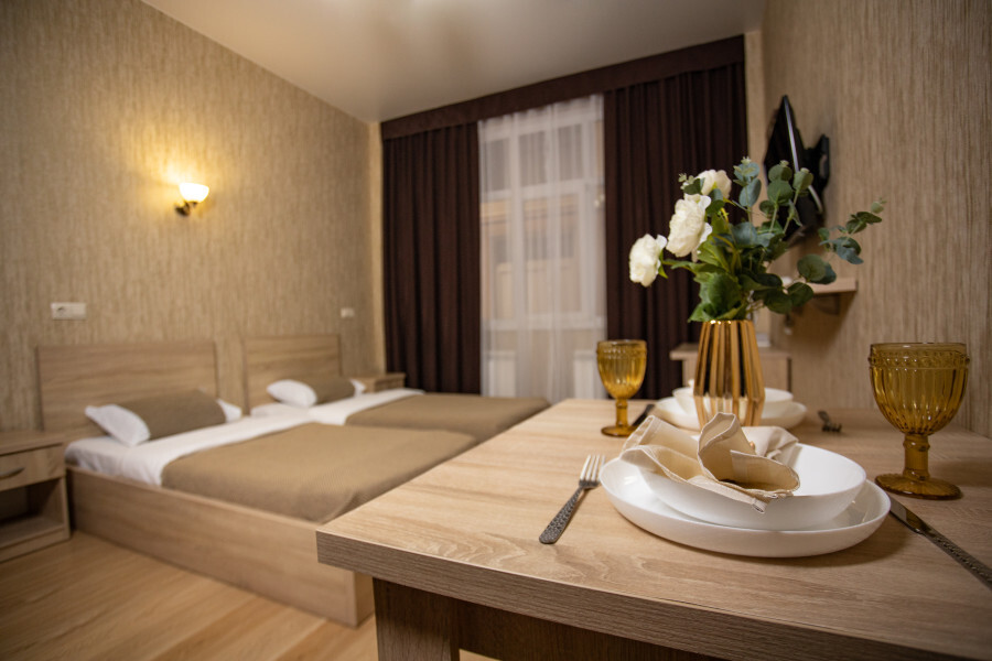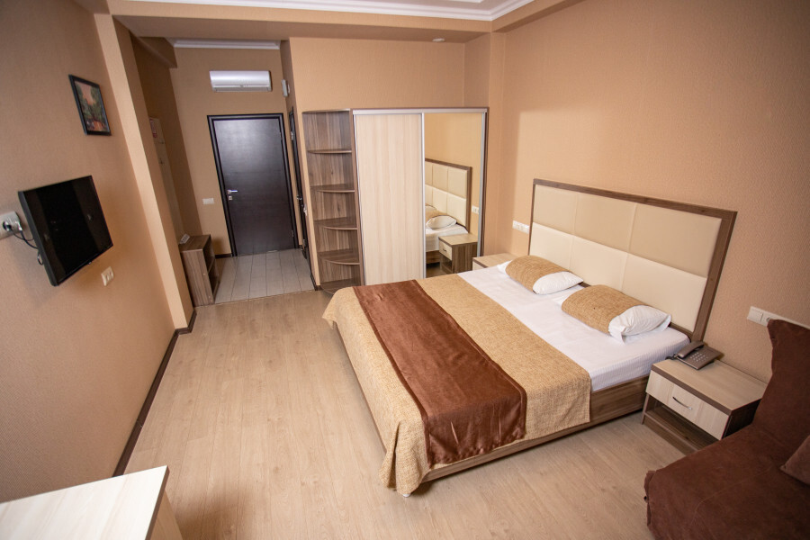 Номер оснащен всеми современными удобствами, которые сделают Ваш отдых максимально комфортным: телевизор, спит-система, холодильник, фен, посуда, ванные принадлежности (гель для душа, мыло, шампунь).