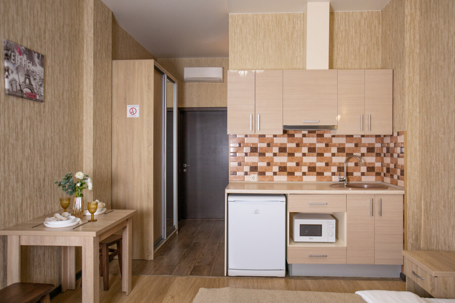 Апартаменты оснащены всеми современными удобствами, которые сделают Ваш отдых максимально комфортным: телевизор, спит-система, холодильник, фен, микроволновая печь, набор посуды для приготовления пищи, ванные принадлежности (гель для душа, мыло, шампунь).
