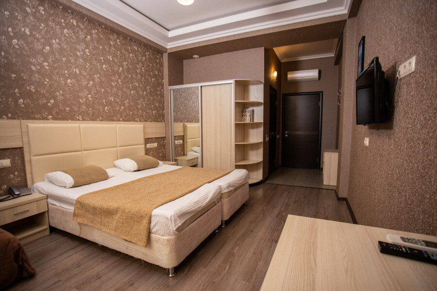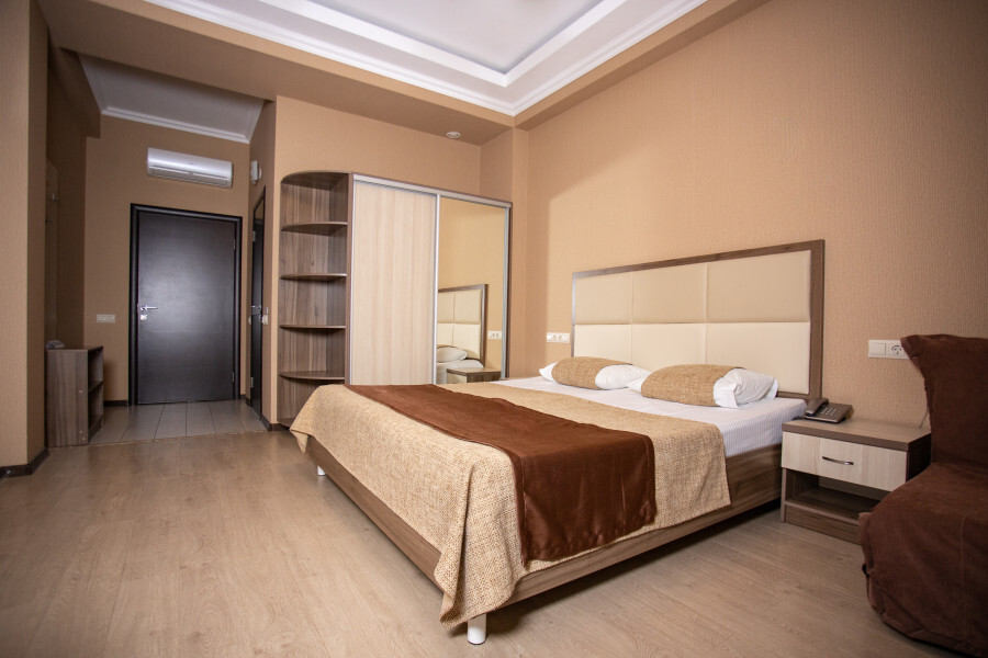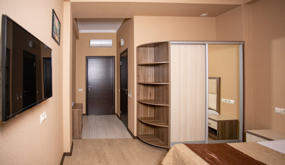 Номер оснащен всеми современными удобствами, которые сделают Ваш отдых максимально комфортным: телевизор, спит-система, холодильник, фен, чайный набор, ванные принадлежности (гель для душа, мыло, шампунь).