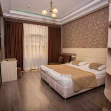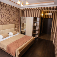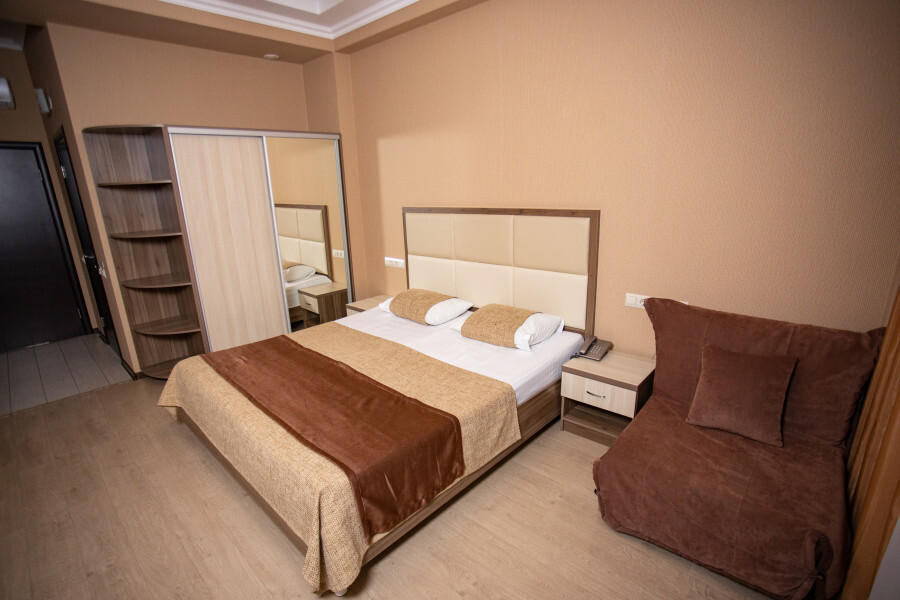 Трехместный номер, площадью 23 кв.м., в котором установлена кровать King-size, одно кресло-кровать.