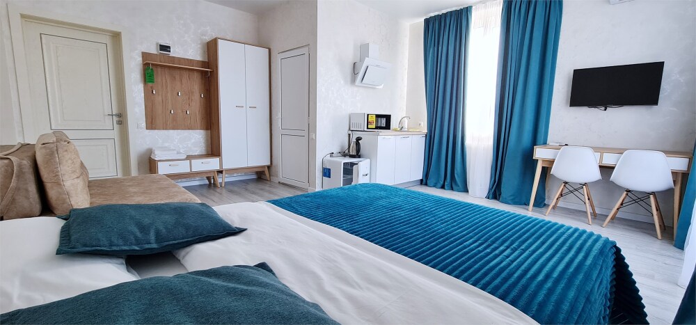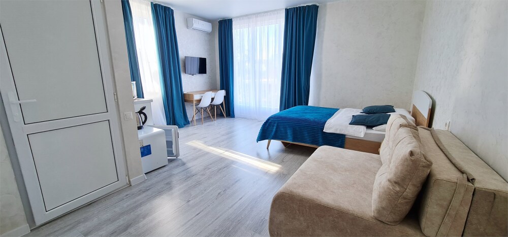 В номере имеется раскладной пуф, который при необходимости можно использовать как дополнительное спальное место за дополнительную плату.