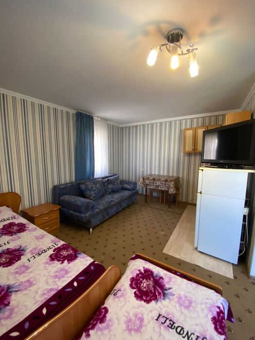 К услугам гостей номера разной вместимости и категорий, со всем необходимым для комфортного отдыха. На 1-м этаже дома расположены 2 кухни-столовые, где имеется все для самостоятельного приготовления пищи. Имеется большой двор с местом для отдыха, мангальная зона, небольшой каркасный бассейн для детей. При необходимости можем бесплатно предоставить парковочное место для автомобиля.
