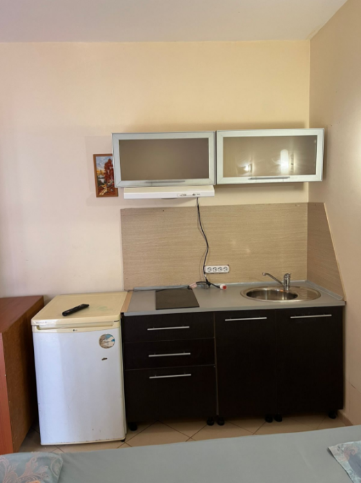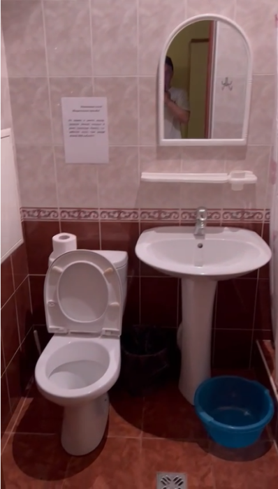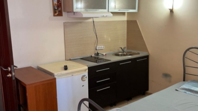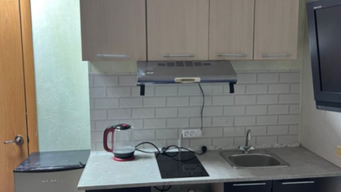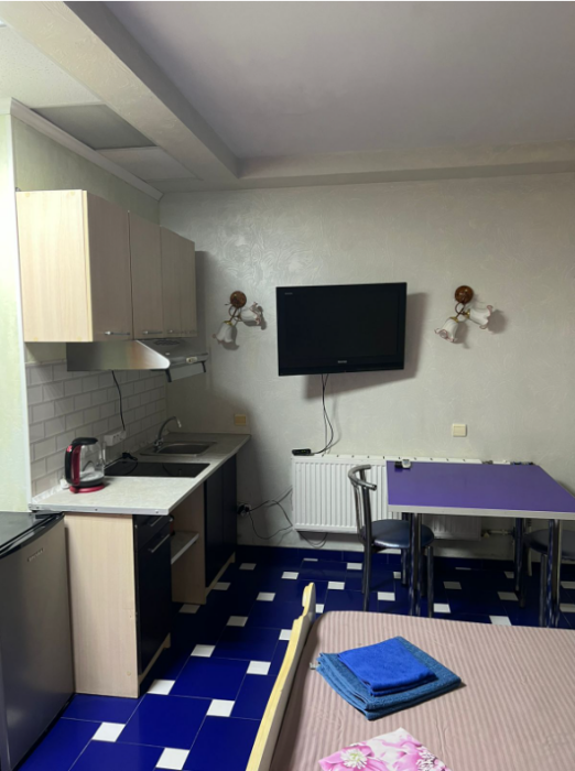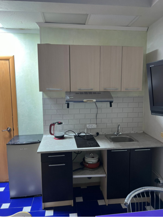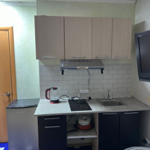 На территории есть общая кухня, которая укомплектована бытовой техникой и посудой.