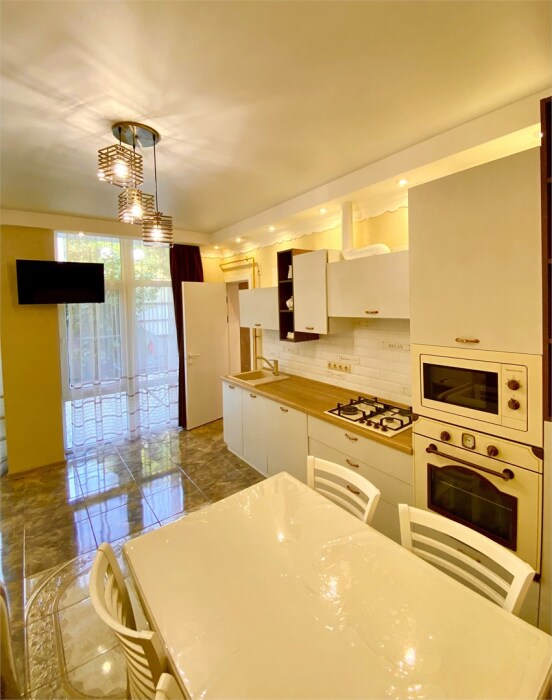 Имеется встроенная бытовая техника, газовая плита, духовой шкаф, микроволновая печь, 2 сплит-системы.