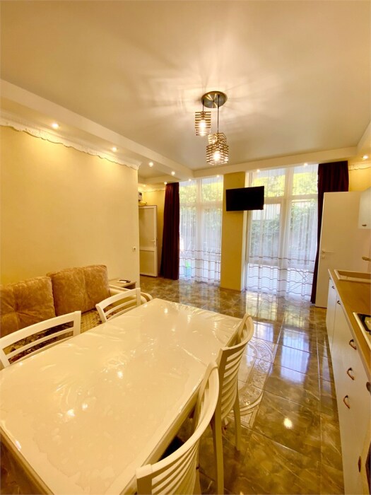 Апартаменты «Люкс» расположены в Адлере ,в 400 метрах от моря. Рядом рынок «Голубые Дали», супермаркеты, остановки общественного транспорта.