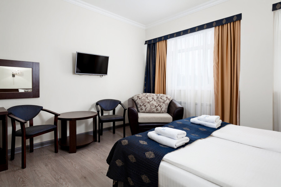 Двухместные номера с одной или двумя кроватями. Расположены на 5 и 6 этажах с видом на город.