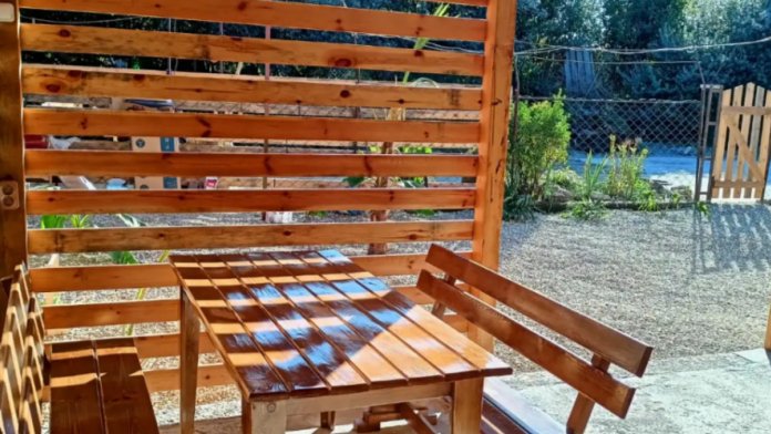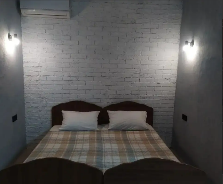 В домике две односпальные кровати, кондиционер, санузел. Рядом с домиком беседка-кухня, есть парковка для автомобиля.