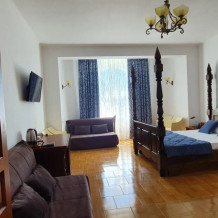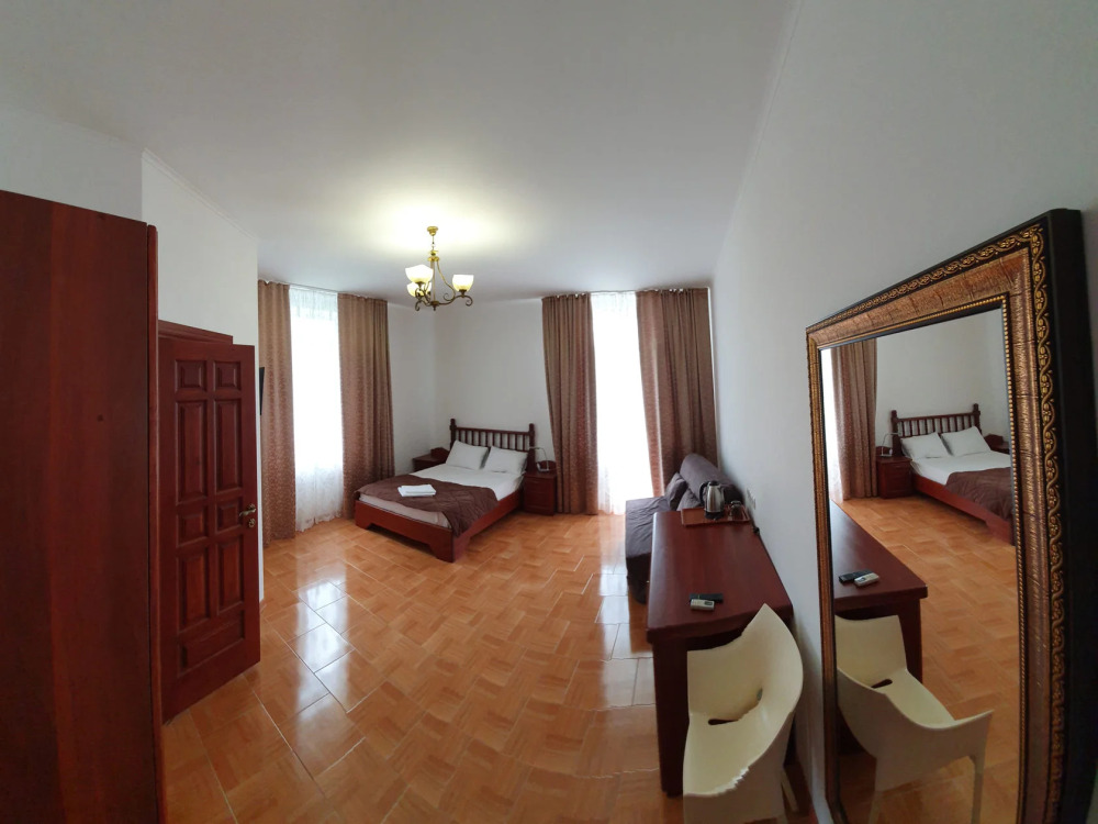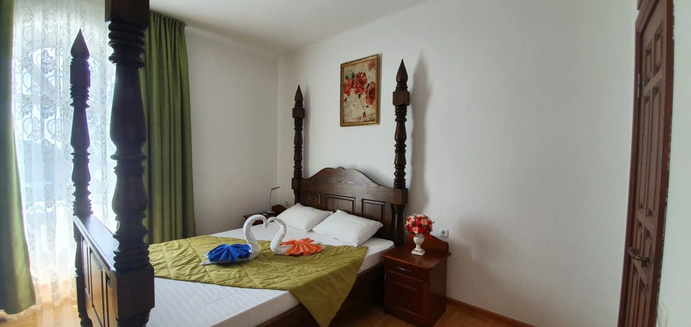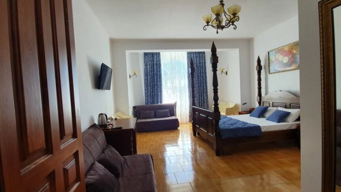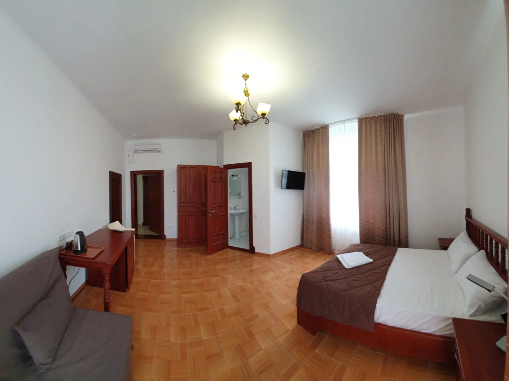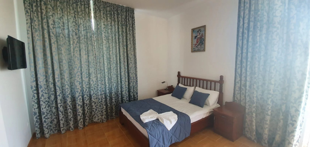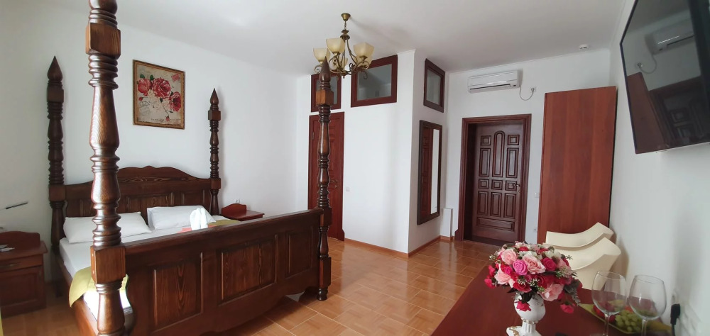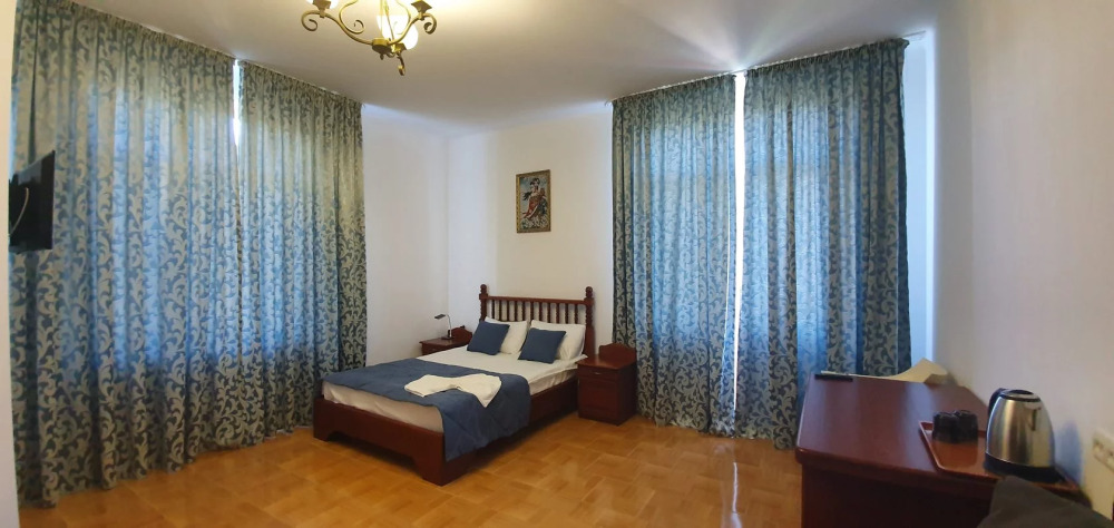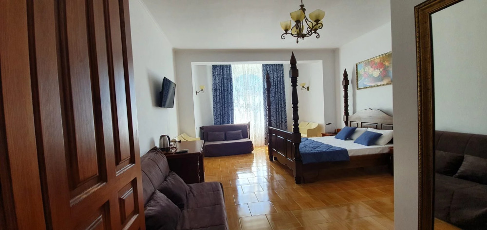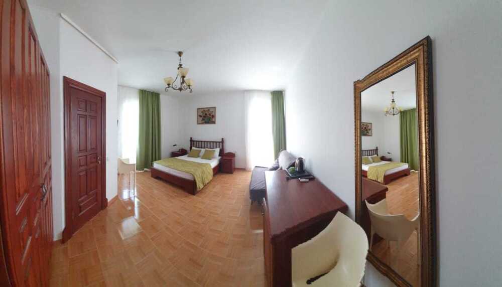 Отель имеет четыре этажа, первый этаж – столовая, второй, третий, четвертый – номера категории Делюкс. К Вашим услугам бассейн с видом на море, бесплатный Wi-Fi. Завтраки включены в стоимость проживания.