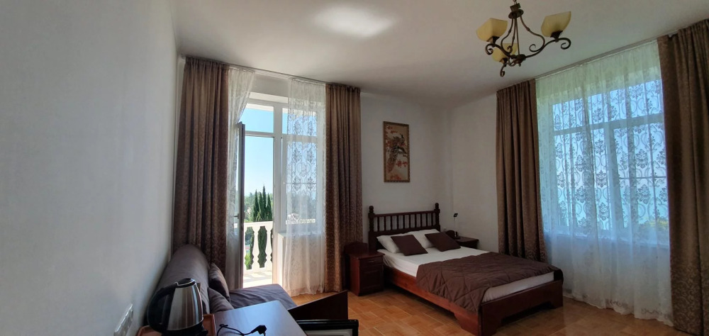 С террасы открывается шикарный вид на Черное море, здесь Вы можете позавтракать или просто выпить чашечку кофе, встретить рассвет или закат, полюбоваться прекрасным видом.