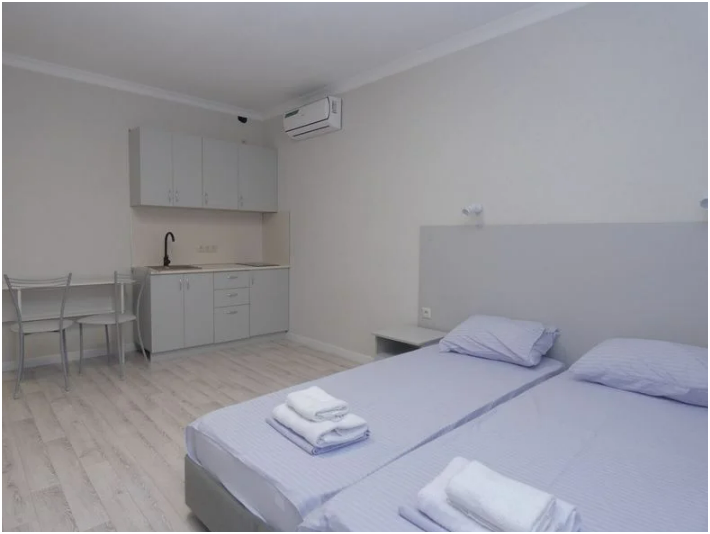 На территории имеется общая кухня, оборудованная для самостоятельного приготовления пищи, зоны для отдыха на свежем воздухе, мангал. Гостям, для проживания, предлагаются уютные номера со всем необходимым для комфортного отдыха.