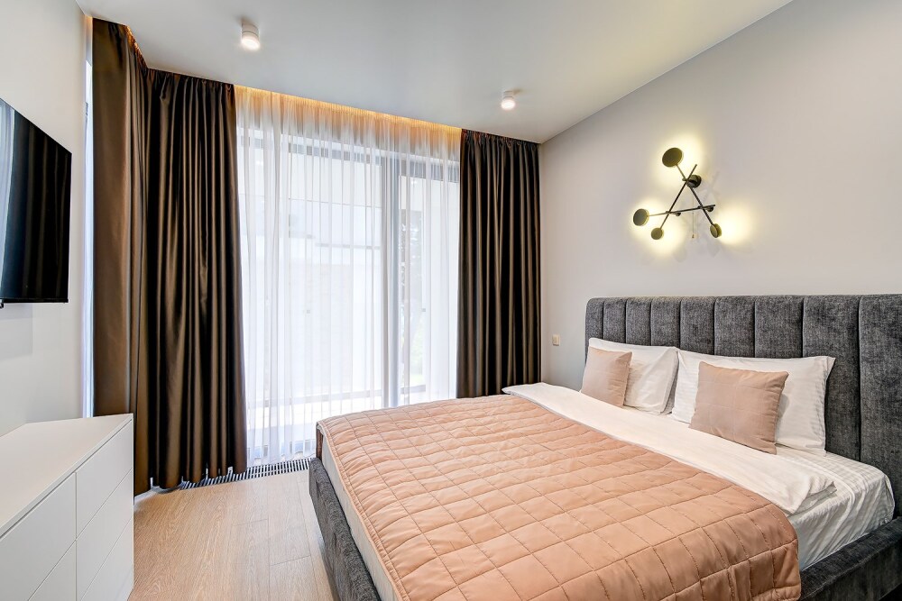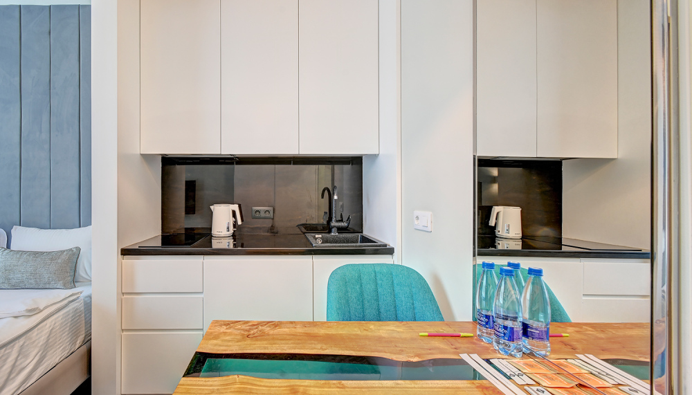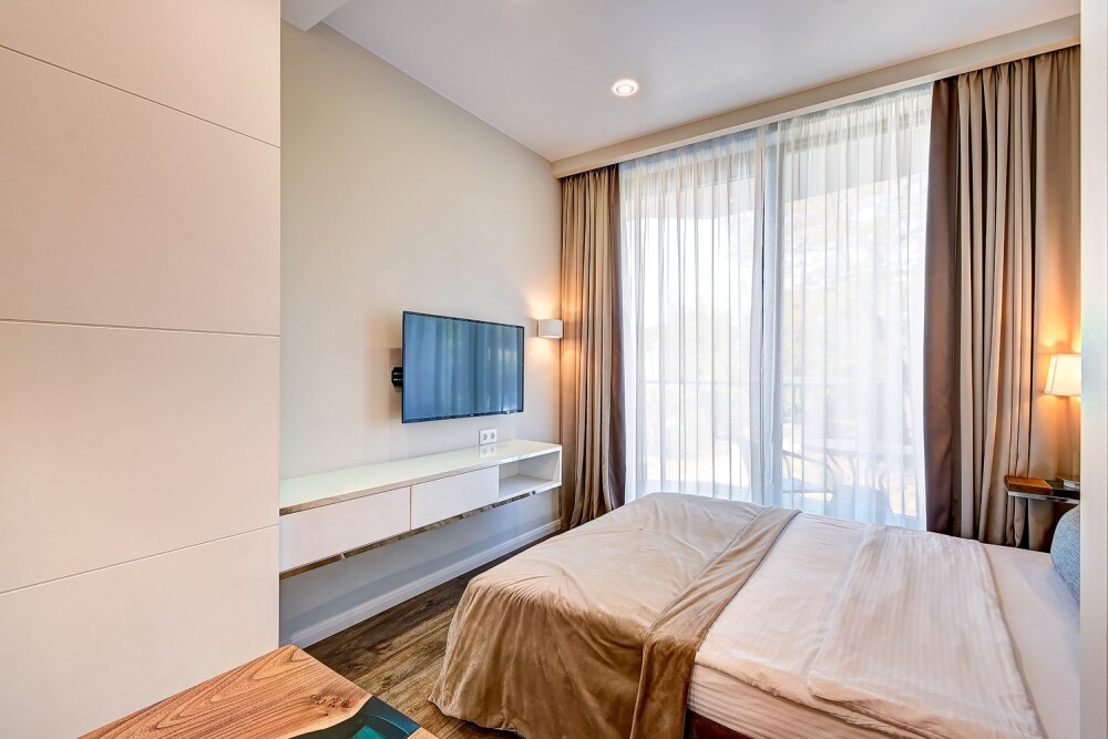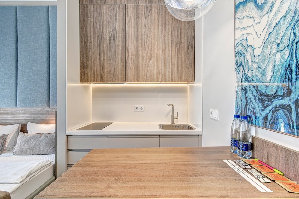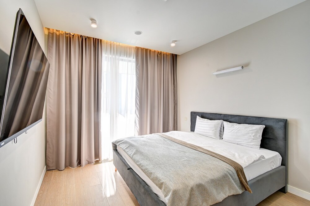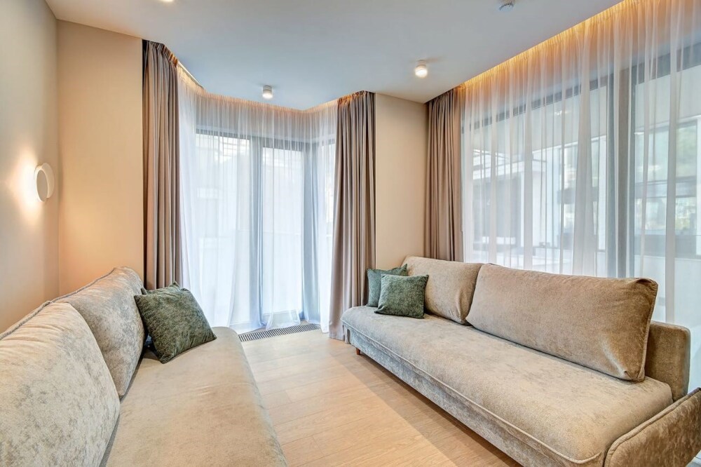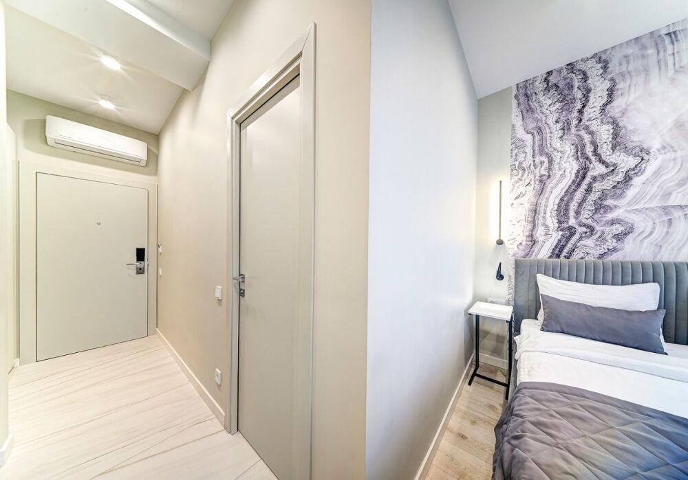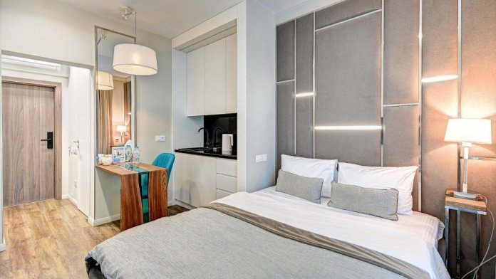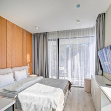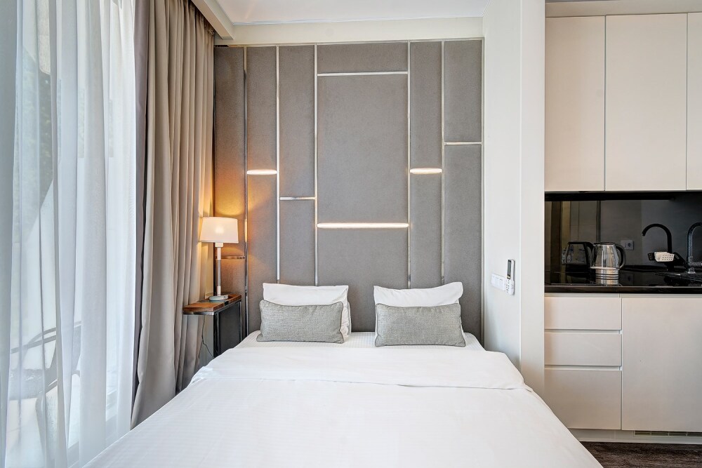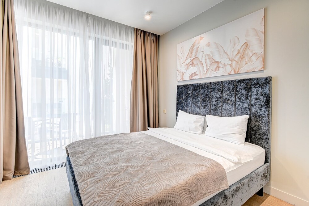 Широкий выбор апартаментов различного размера и конфигурации, чтобы соответствовать потребностям различных клиентов, будь то семьи, пары или деловые путешественники. От студий стандарт до номеров «Grand Luxe». Только высокое качество номеров с современным дизайном, удобствами и полным набором необходимых удобств для комфортного проживания. Полностью оборудованная мини-кухня, мягкая мебель из велюра, система кондиционирования и встроенного отопления, LCD-телевизор с цифровыми каналами и радио, фен, окна и двери с повышенной звукоизоляцией, высокоскоростной Wi-Fi, косметический набор.