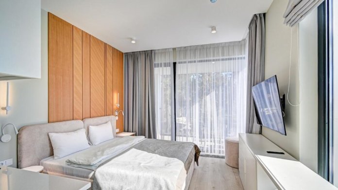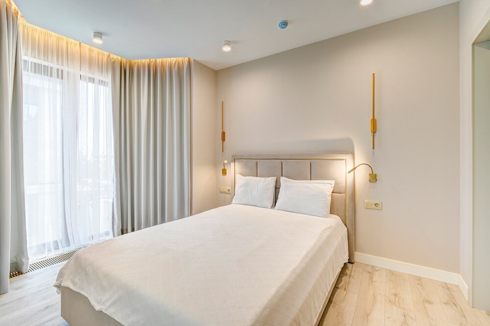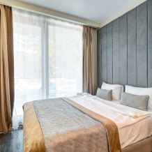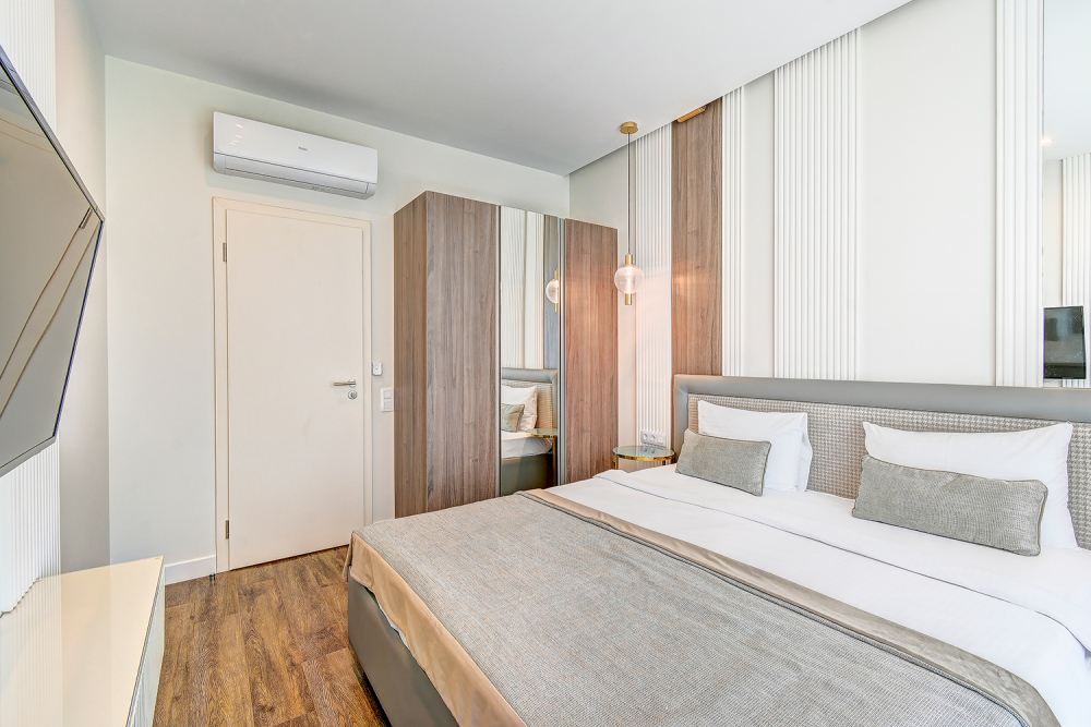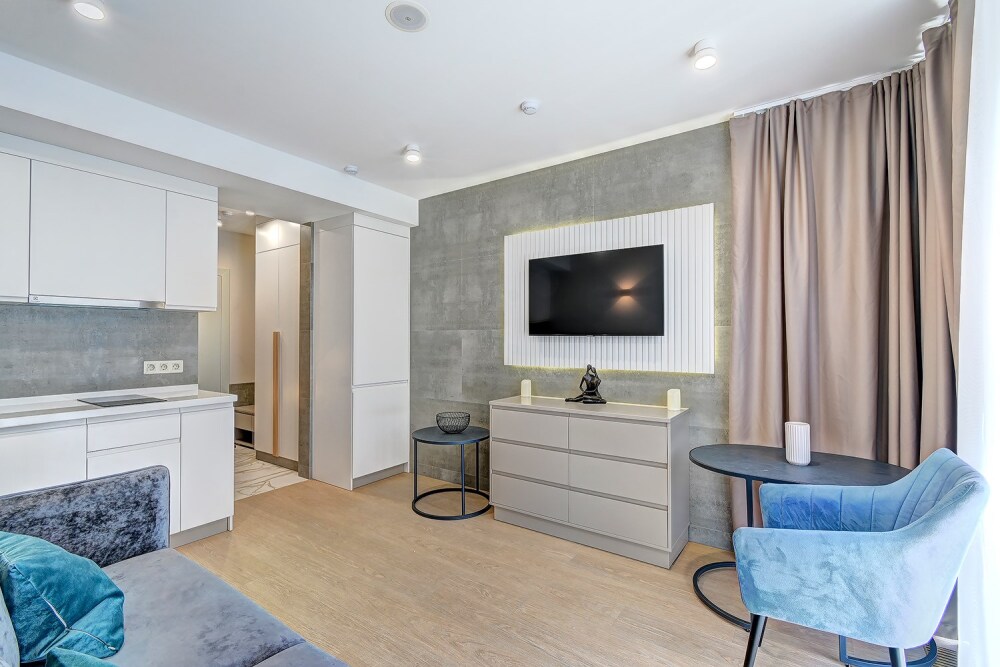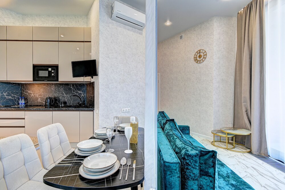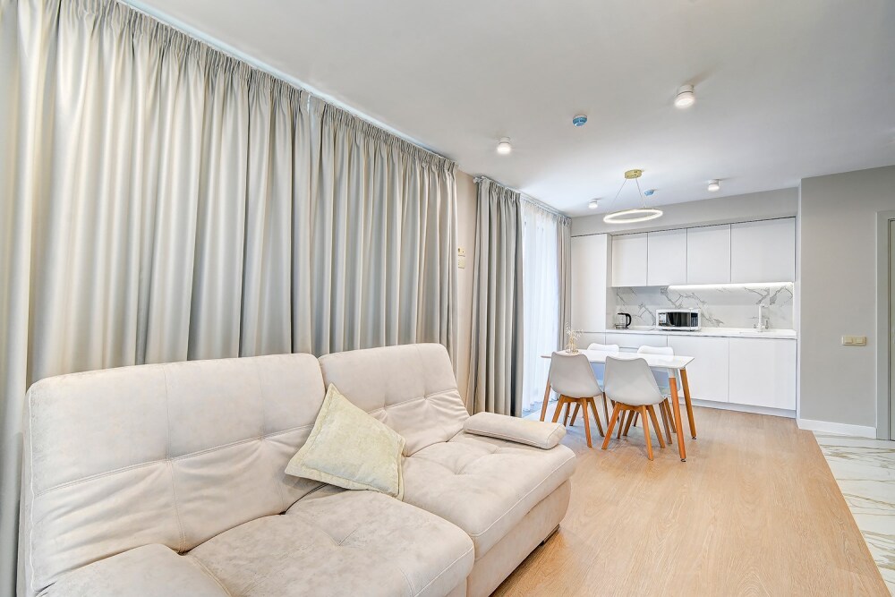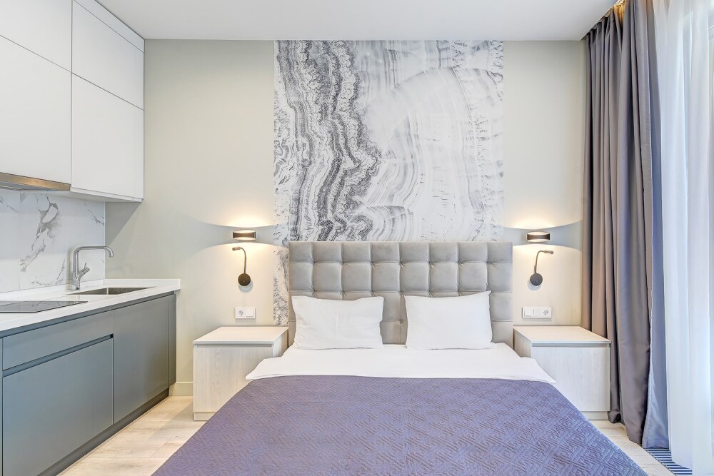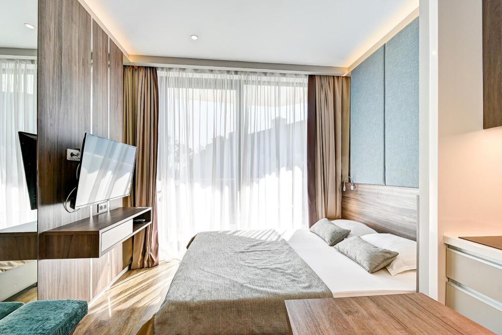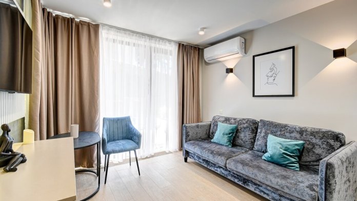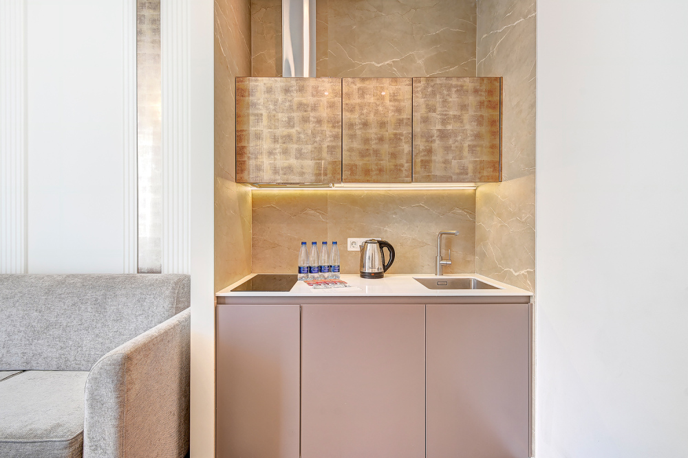Широкий выбор апартаментов различного размера и конфигурации, чтобы соответствовать потребностям различных клиентов, будь то семьи, пары или деловые путешественники. От студий стандарт до номеров «Grand Luxe». Только высокое качество номеров с современным дизайном, удобствами и полным набором необходимых удобств для комфортного проживания. Полностью оборудованная мини-кухня, мягкая мебель из велюра, система кондиционирования и встроенного отопления, LCD-телевизор с цифровыми каналами и радио, фен, окна и двери с повышенной звукоизоляцией, высокоскоростной Wi-Fi, косметический набор.