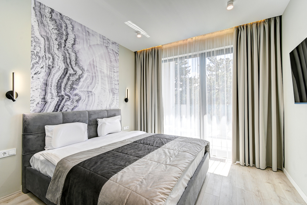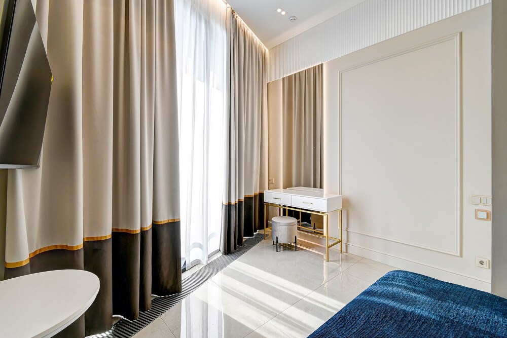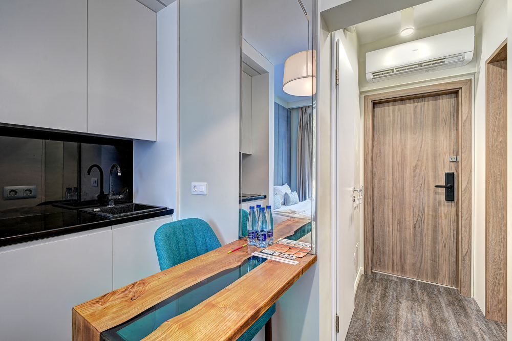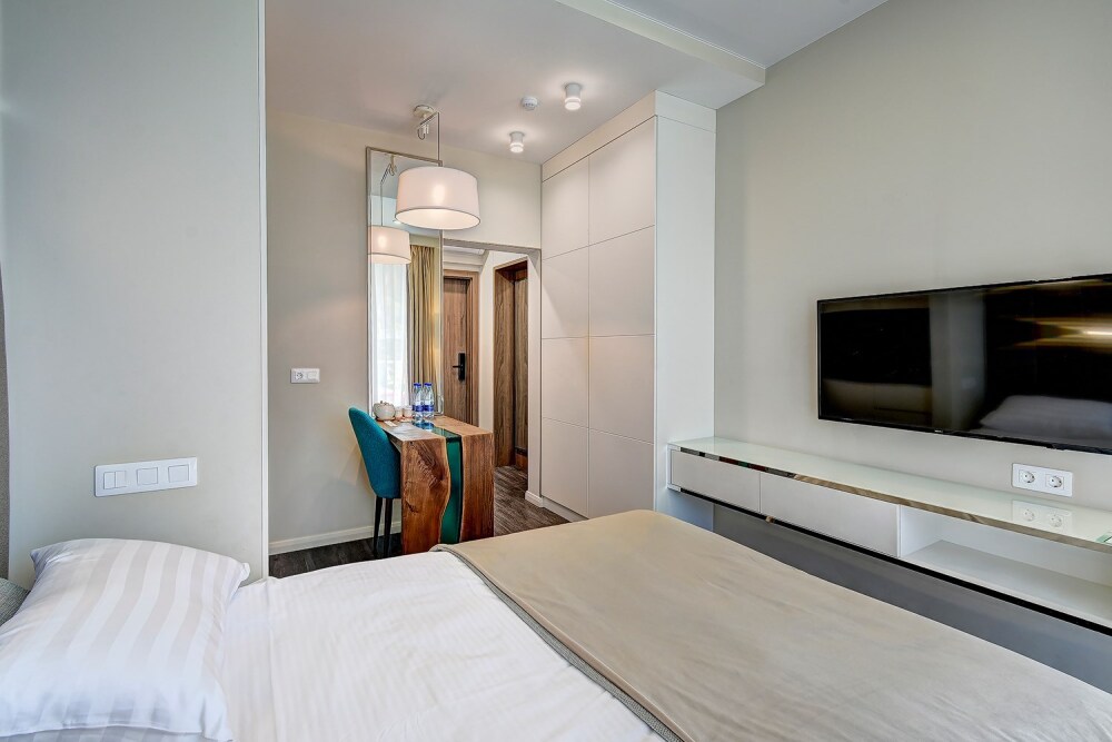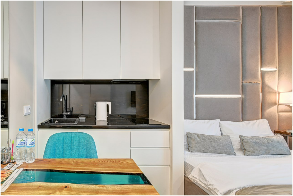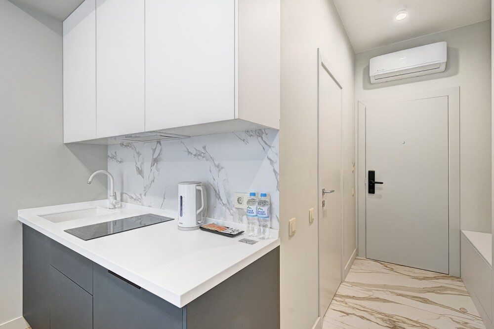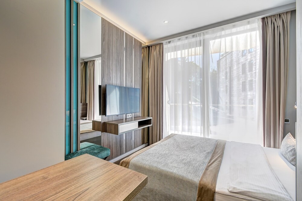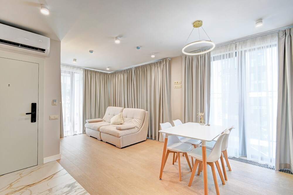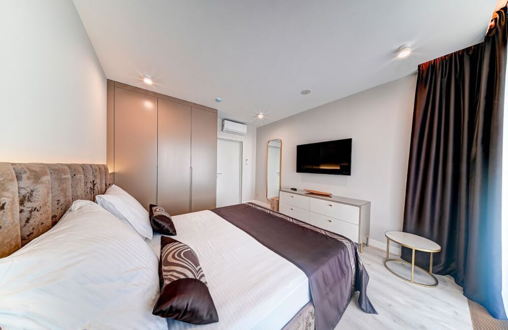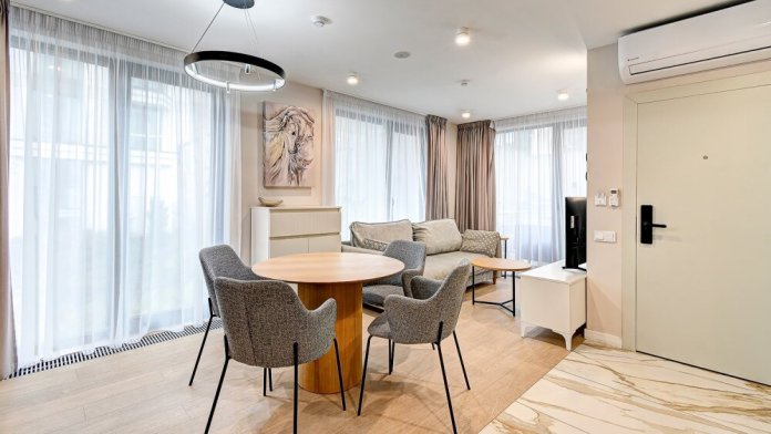 Широкий выбор апартаментов различного размера и конфигурации, чтобы соответствовать потребностям различных клиентов, будь то семьи, пары или деловые путешественники. От студий стандарт до номеров «Grand Luxe». Только высокое качество номеров с современным дизайном, удобствами и полным набором необходимых удобств для комфортного проживания. Полностью оборудованная мини-кухня, мягкая мебель из велюра, система кондиционирования и встроенного отопления, LCD-телевизор с цифровыми каналами и радио, фен, окна и двери с повышенной звукоизоляцией, высокоскоростной Wi-Fi, косметический набор.