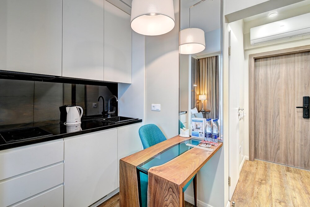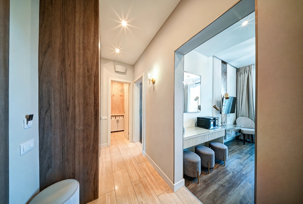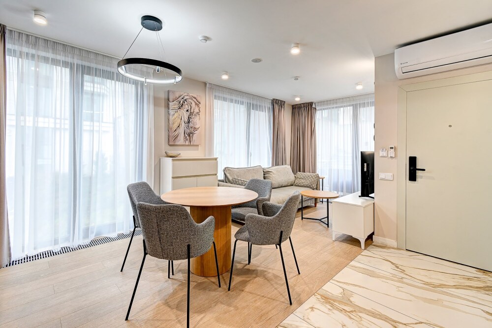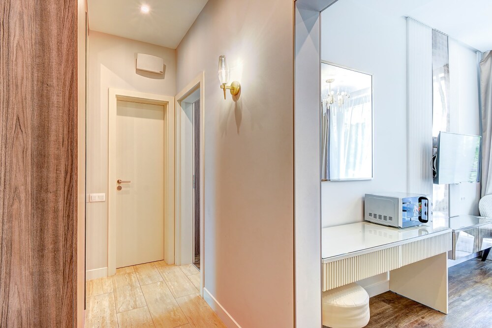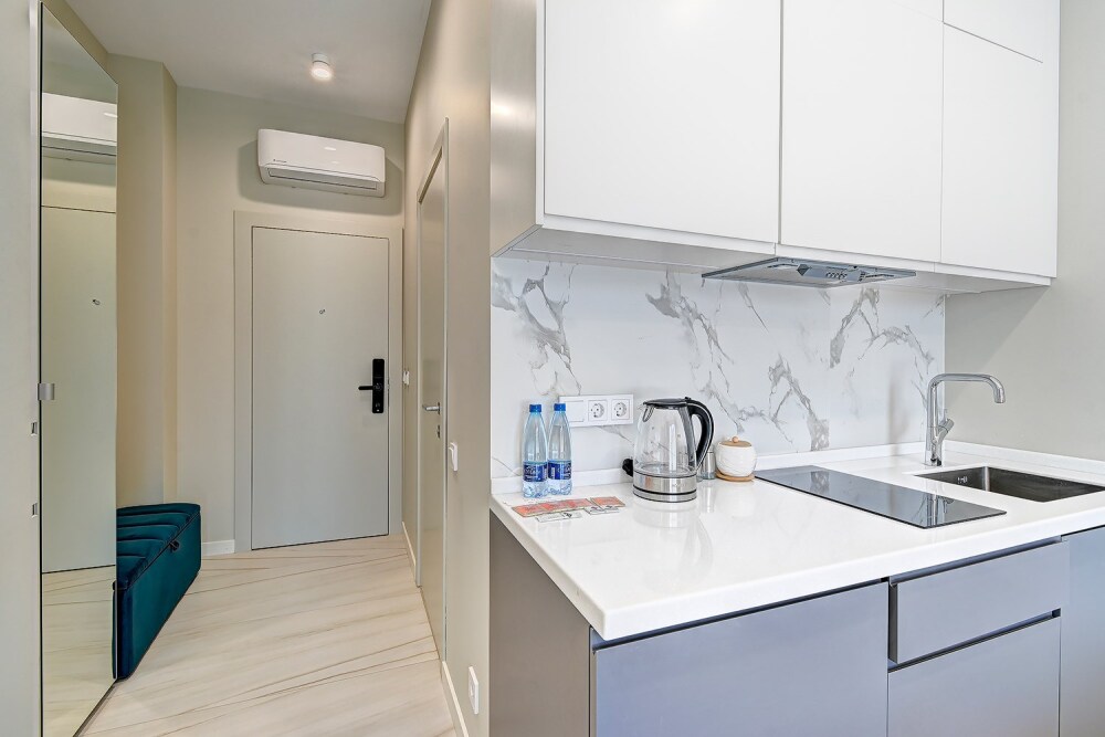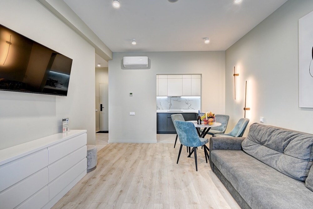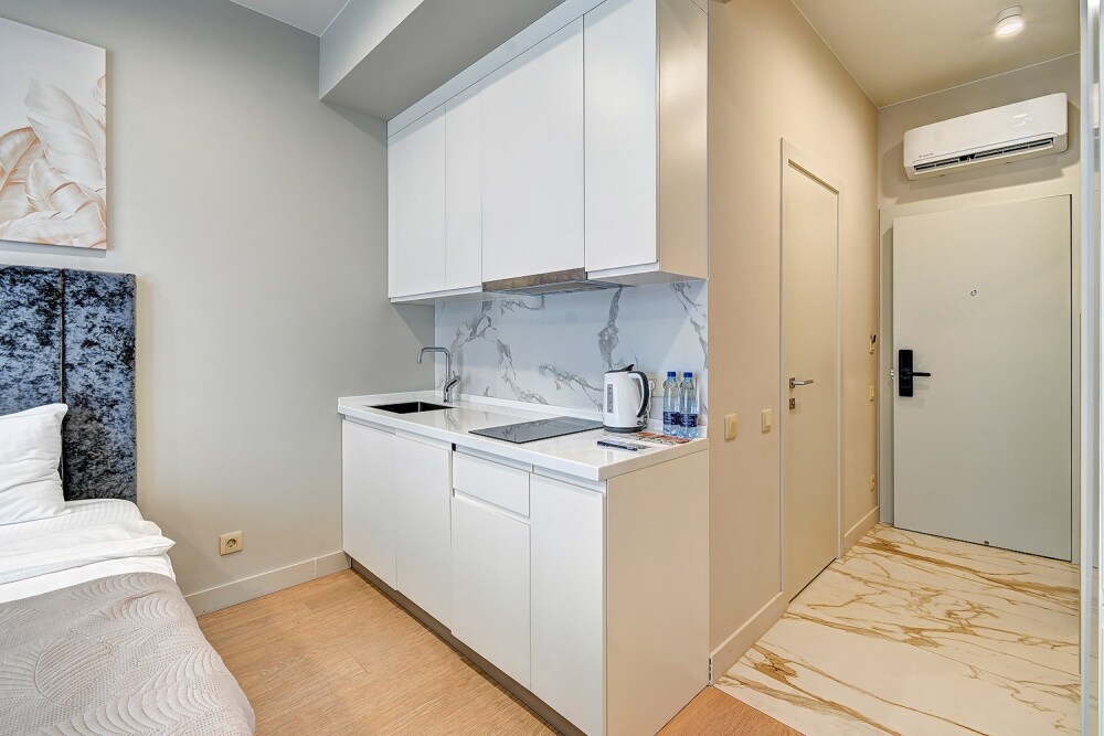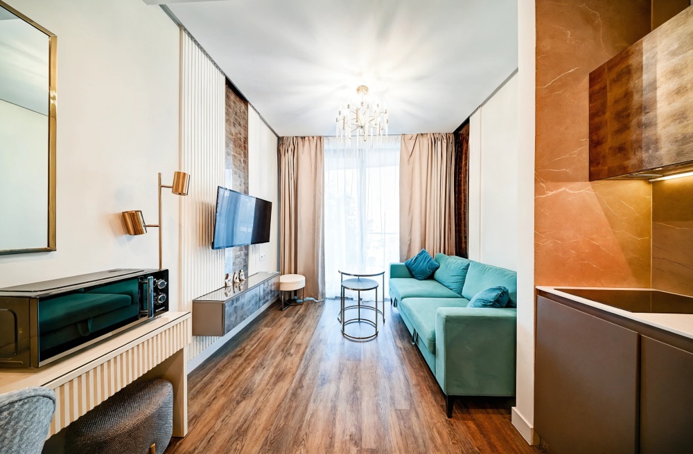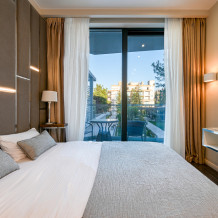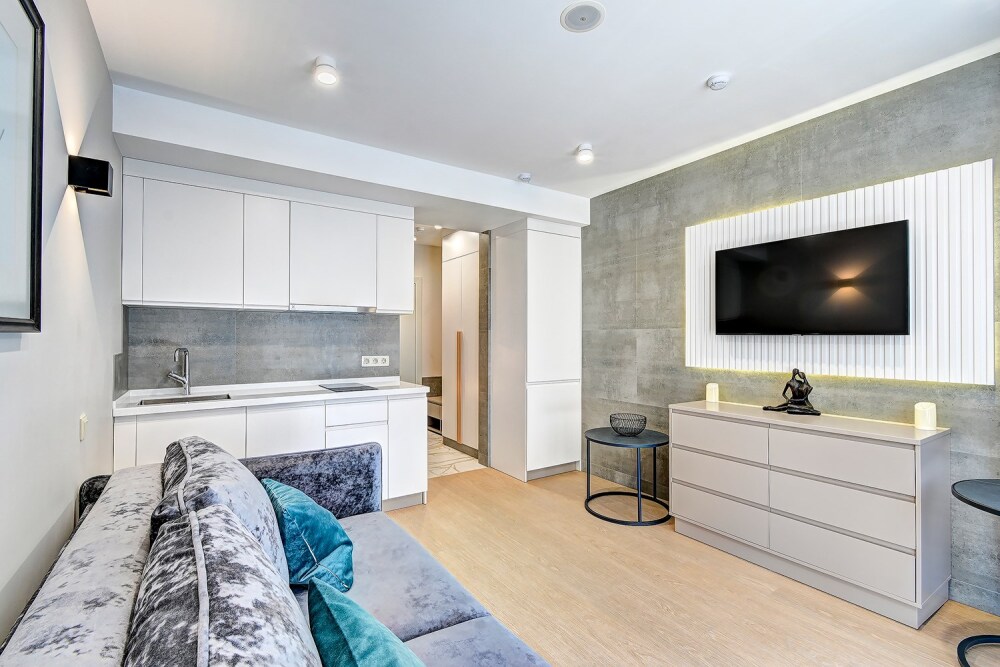 Широкий выбор апартаментов различного размера и конфигурации, чтобы соответствовать потребностям различных клиентов, будь то семьи, пары или деловые путешественники. От студий стандарт до номеров «Grand Luxe». Только высокое качество номеров с современным дизайном, удобствами и полным набором необходимых удобств для комфортного проживания. Полностью оборудованная мини-кухня, мягкая мебель из велюра, система кондиционирования и встроенного отопления, LCD-телевизор с цифровыми каналами и радио, фен, окна и двери с повышенной звукоизоляцией, высокоскоростной Wi-Fi, косметический набор.