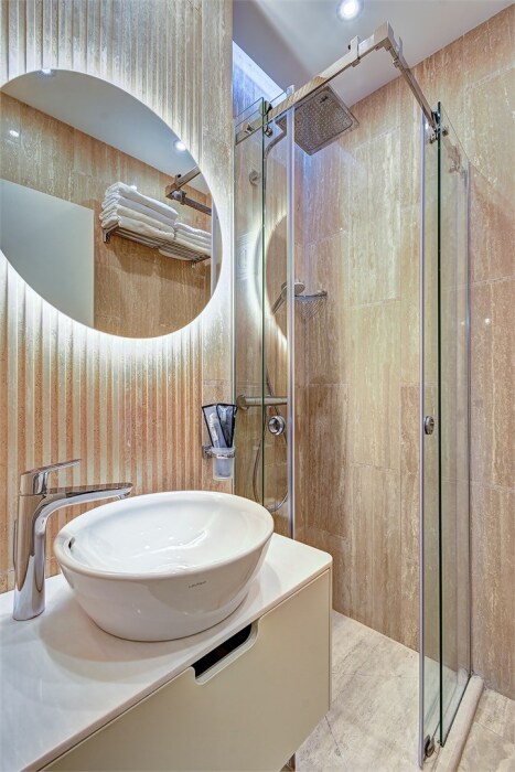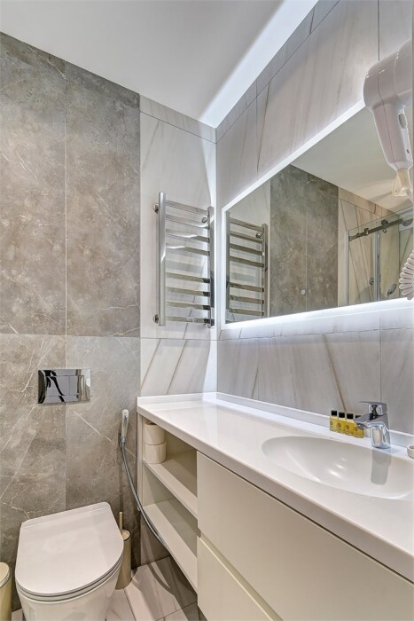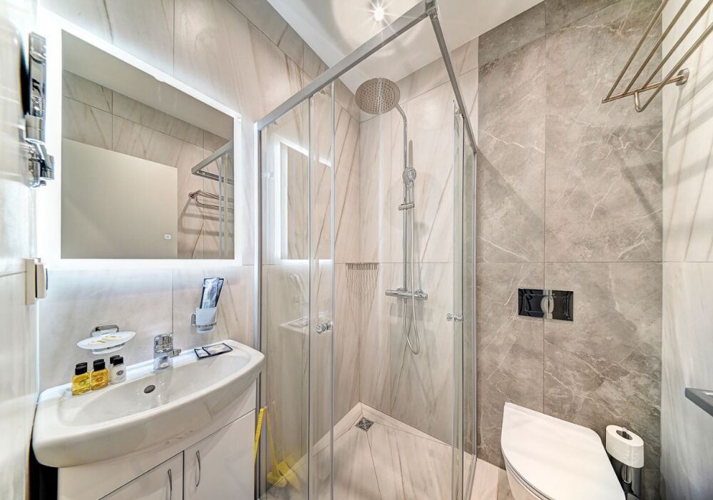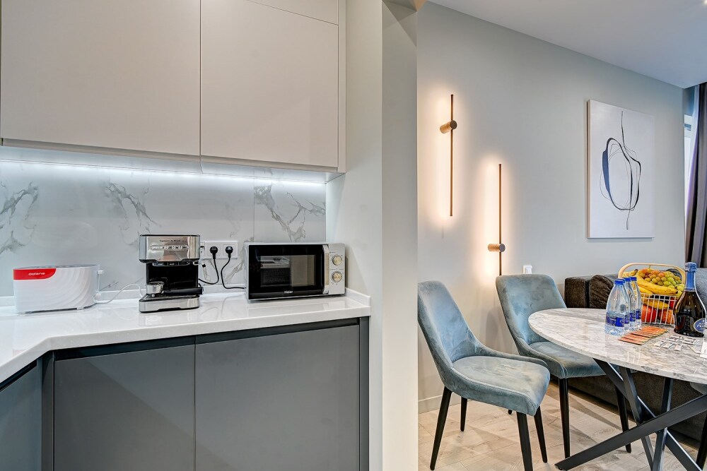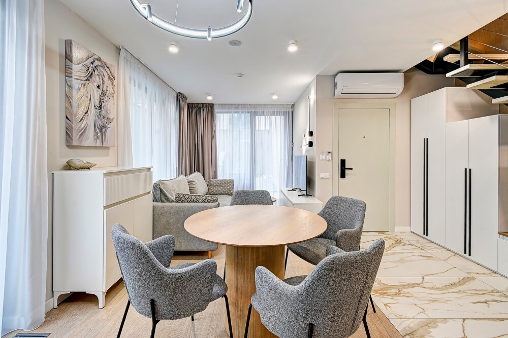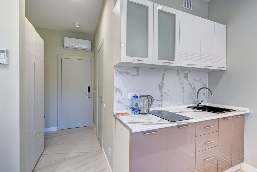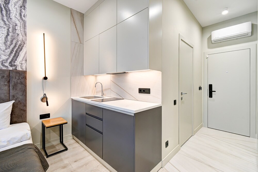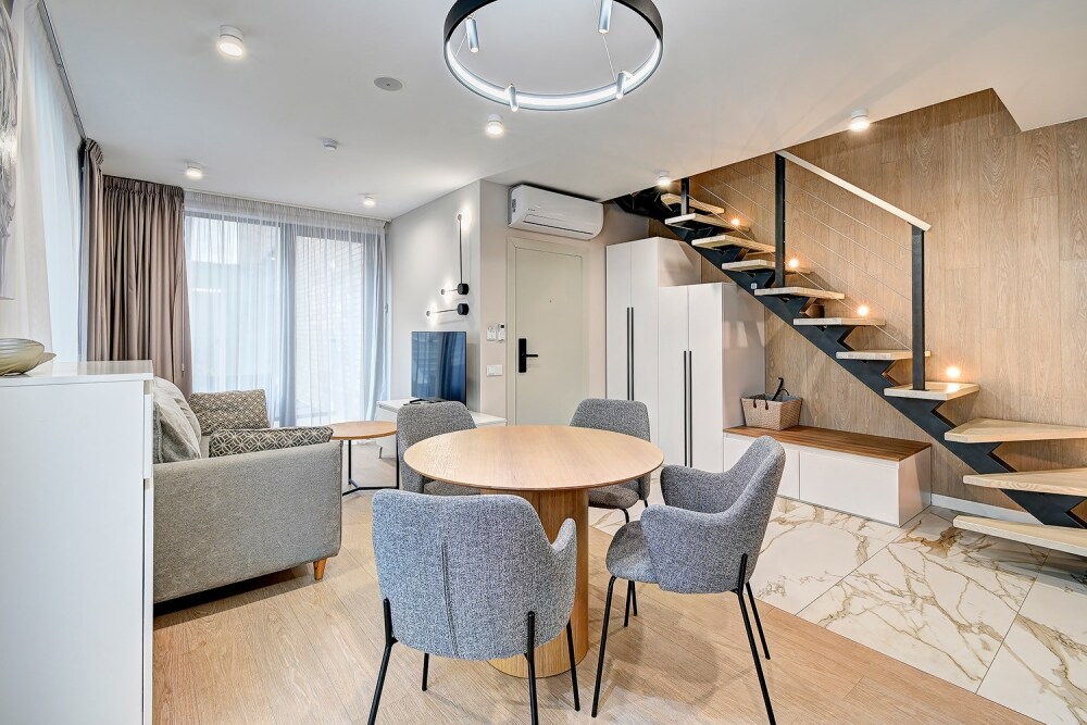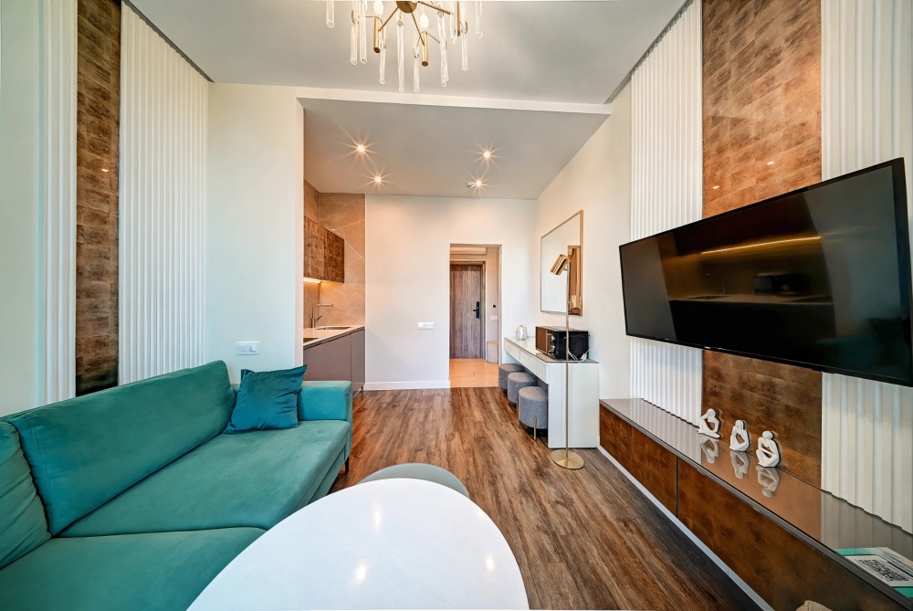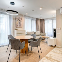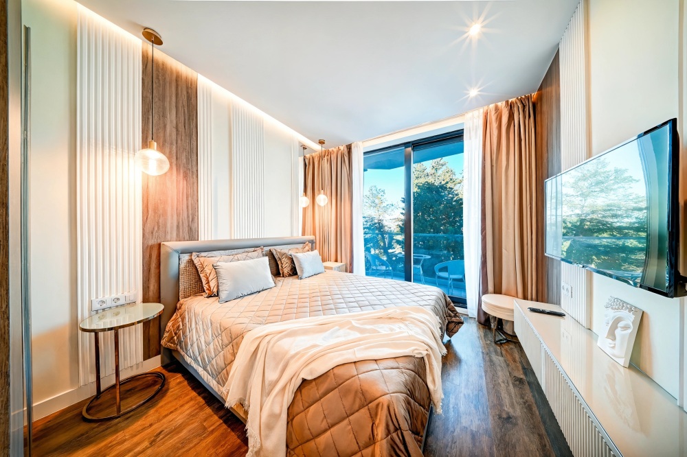Широкий выбор апартаментов различного размера и конфигурации, чтобы соответствовать потребностям различных клиентов, будь то семьи, пары или деловые путешественники. От студий стандарт до номеров «Grand Luxe». Только высокое качество номеров с современным дизайном, удобствами и полным набором необходимых удобств для комфортного проживания. Полностью оборудованная мини-кухня, мягкая мебель из велюра, система кондиционирования и встроенного отопления, LCD-телевизор с цифровыми каналами и радио, фен, окна и двери с повышенной звукоизоляцией, высокоскоростной Wi-Fi, косметический набор.