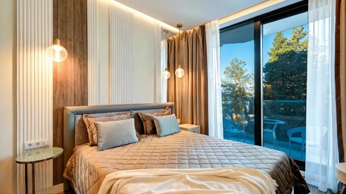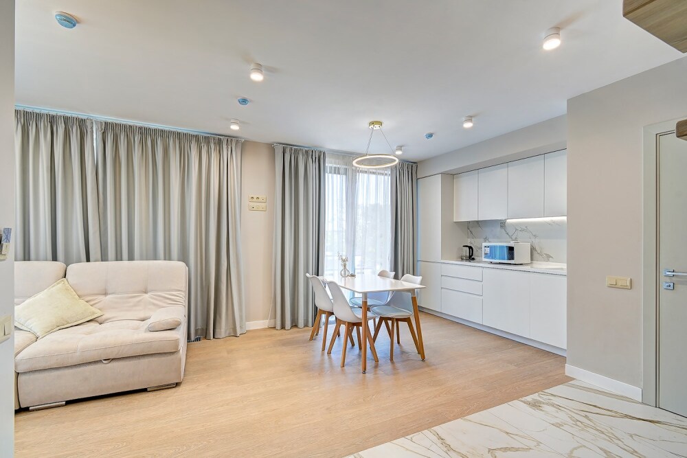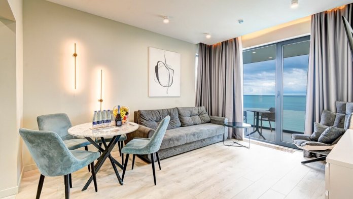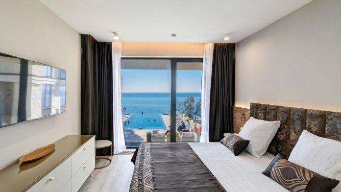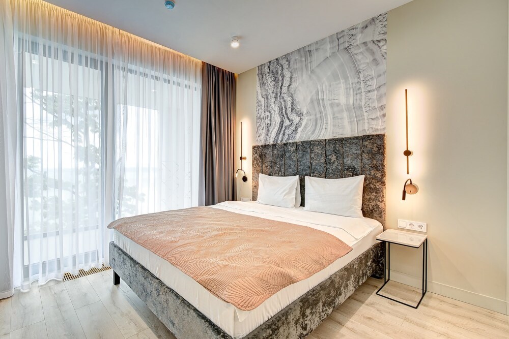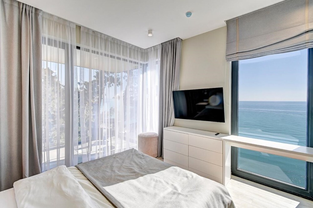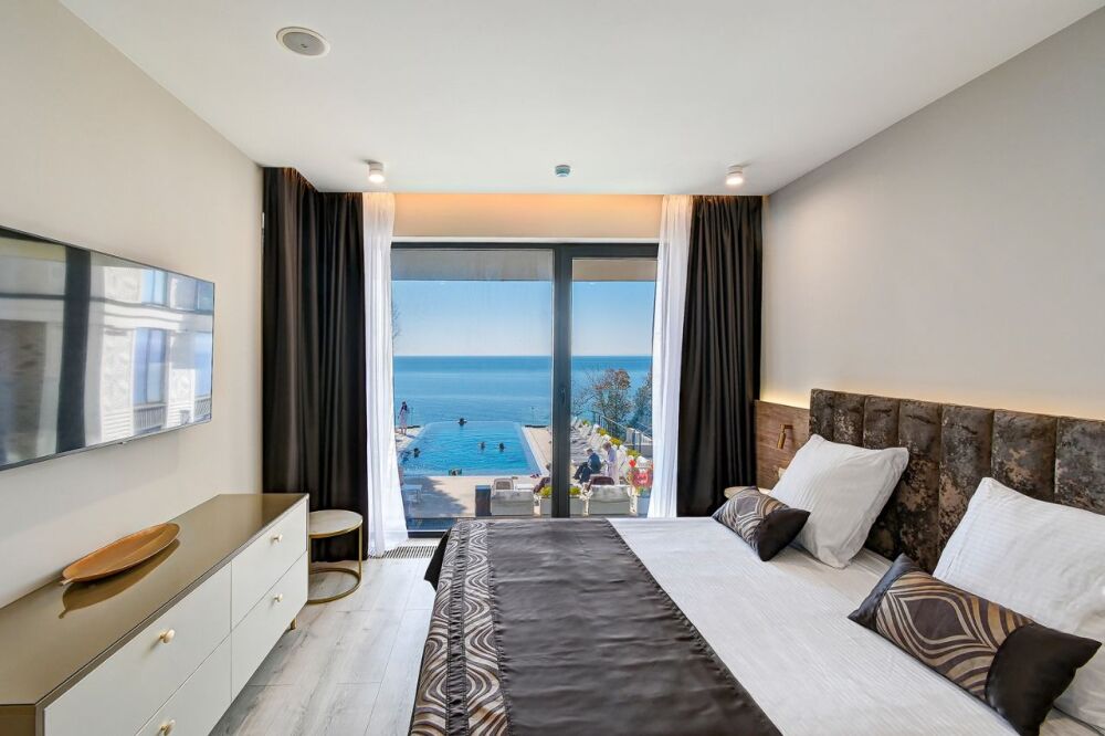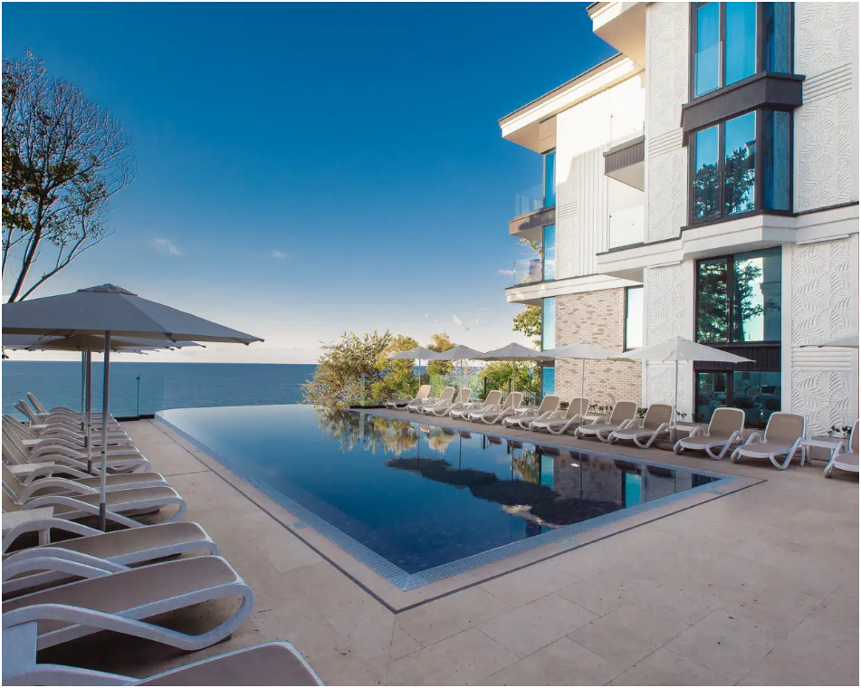 Апартаменты расположены на 1-ой береговой линии Черного моря в экологическом чистом районе Элегантность интерьера и дружественная к окружающей среде архитектура дарят атмосферу спокойствия и домашнего комфорта. Одной из визитных карточек наших апартаментов является роскошный собственный пляж с лазурно-кристальным морем и роскошными бассейнами-инфинити с пленительной безграничностью водной стихии, которая придает еще больше наслаждения и генерирует новые эмоциональные впечатления для шикарных фотографий и отдыха.