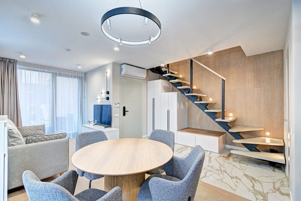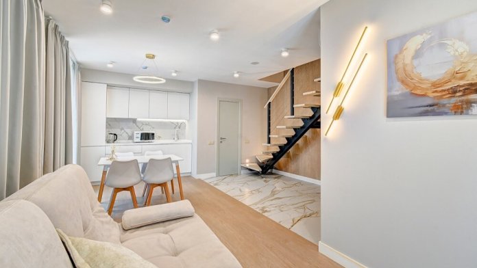 Дуплекс в новых корпусах отеля, подходит для комфортного проживания семьей или компанией друзей. Номер состоят из двух уровней, где на первом этаже расположена гостиная зона с раскладным двухместным диваном, мини-кухней и и обеденной зоной. На втором этаже находится спальня с двуспальной кроватью, где Вы сможете насладиться комфортным и спокойным сном.