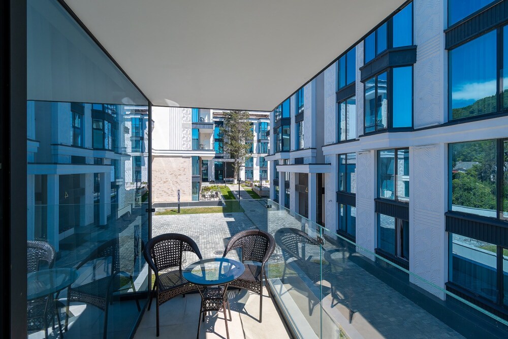 Вам доступны дополнительные удобства, такие как бассейн, SPA-центр, тренажерная площадка, детская площадка, парковка, ресторан с панорамными видами на море и другое, чтобы обеспечить полноценный отдых или комфортную рабочую обстановку.