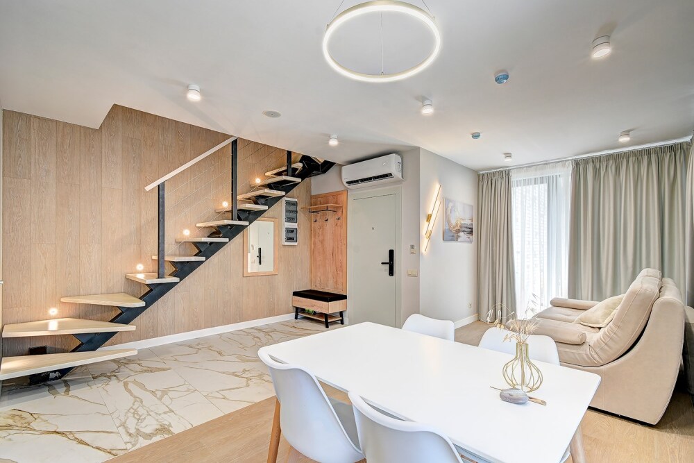 Семейный Дуплекс – это идеальный выбор для тех, кто ценит уют и комфорт. Этот трехкомнатный номер предлагает идеальное сочетание пространства и функциональности. В Вашем распоряжении будет гостиная комната с раскладным диваном и две уютные спальни.
