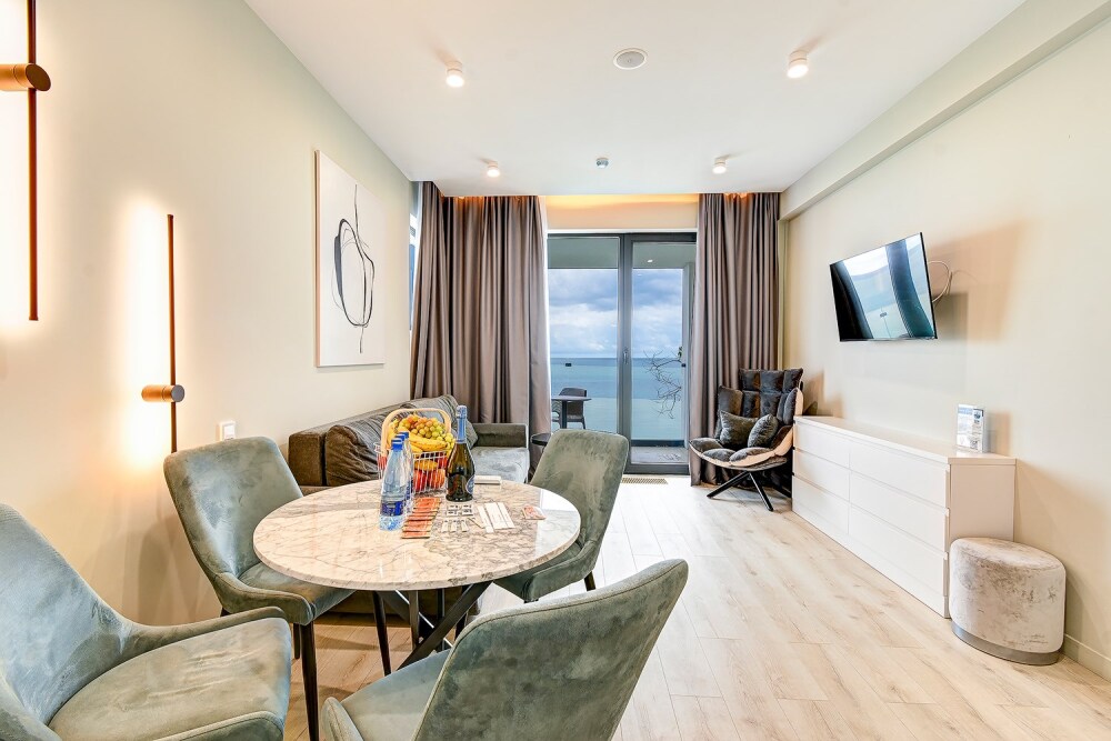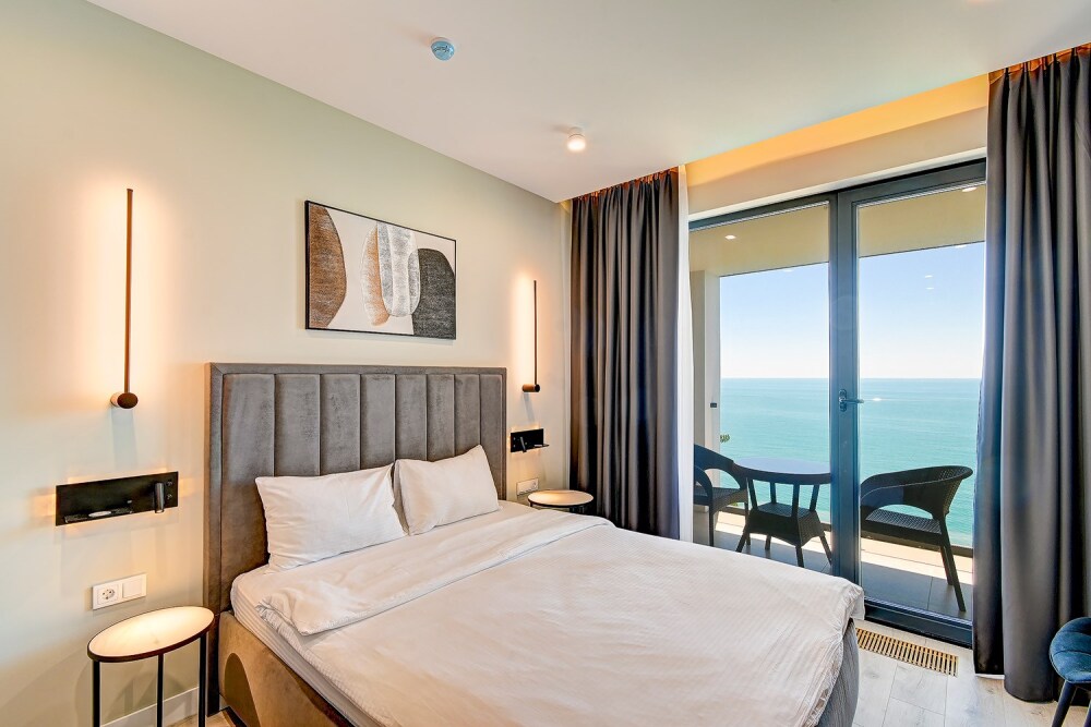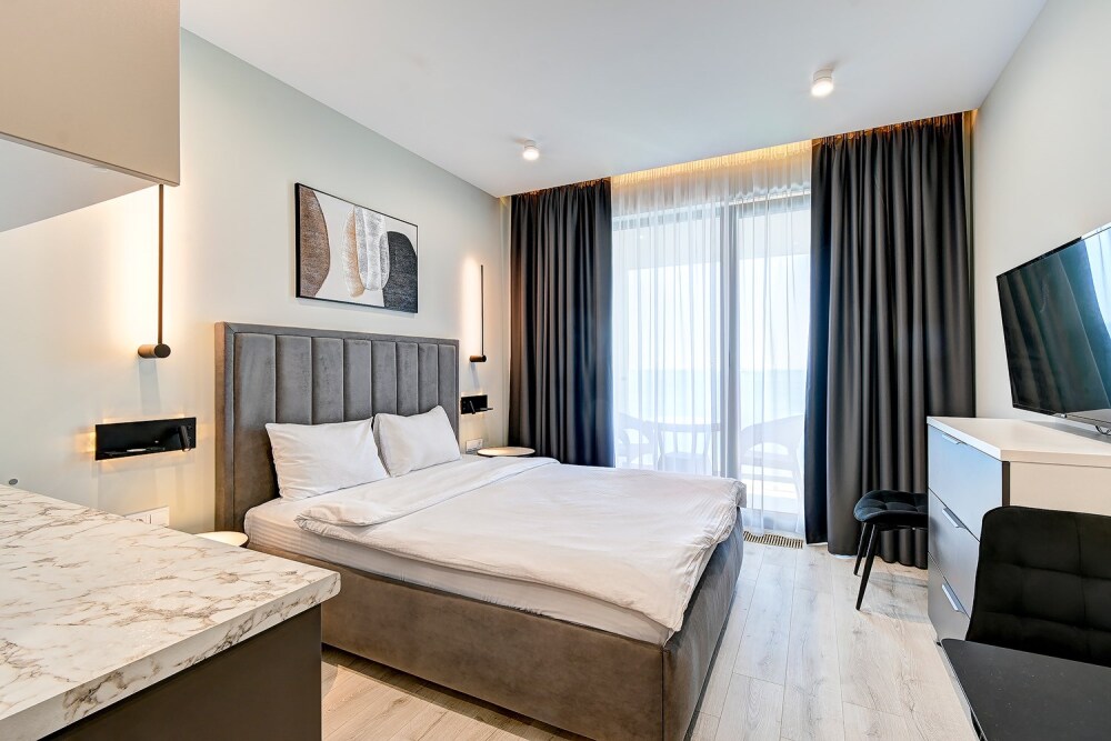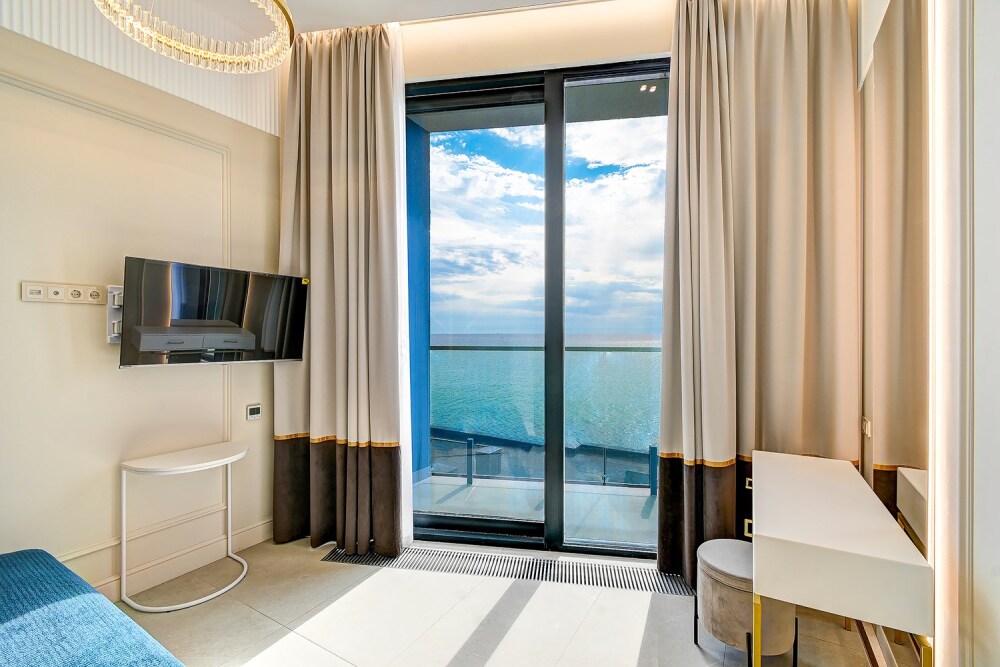 Апартаменты расположены на 1-ой береговой линии Черного моря в экологическом чистом районе. Элегантность интерьера и дружественная к окружающей среде архитектура дарят атмосферу спокойствия и домашнего комфорта. Одной из визитных карточек наших апартаментов является роскошный собственный пляж с лазурно-кристальным морем и роскошными бассейнами-инфинити с пленительной безграничностью водной стихии, которая придает еще больше наслаждения и генерирует новые эмоциональные впечатления для шикарных фотографий и отдыха. Уникальный, целебный климат местной локации обогащает потребности организма в красоте и здоровье, по средством аэротерапии и талассотерапии. Данный курорт предлагает приятный пляжный отдых с восстановлением жизненных сил и наполнением энергией.