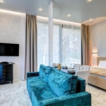 Этот трехкомнатный номер предлагает идеальное сочетание пространства и функциональности. В Вашем распоряжении будет гостиная комната с раскладным диваном и две уютные спальни.