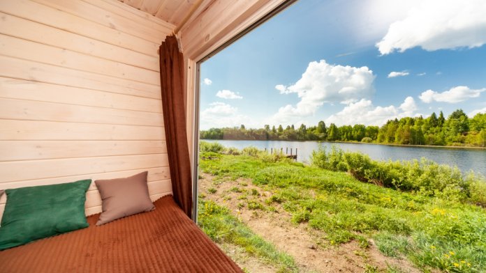 • прекрасный вид на озеро из панорамного окна